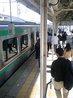 お約束の学習能力ゼロで跨線橋よか前杉(>_<) E721系4連で多めではありますが急いでなんとかロング部確保。あぁやっぱり18や鉄道の日記念シーズンの土休日は東武に運賃払ってでも常磐線まわりにしよう…