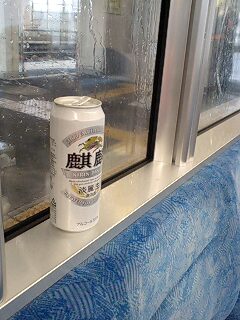 というわけで折り返し始発浜松行きが遠くの3番線に到着、遠目でトイレあり車を確認した後に駅売店で追加購入してから乗り込んでシート端。ここから島田までは脅威の平日データイム10分ヘッドですが、なぜか私の向かいに座るスーツ&ネクタイなビジネスパースンもぐびなま呑んでます(^o^;)