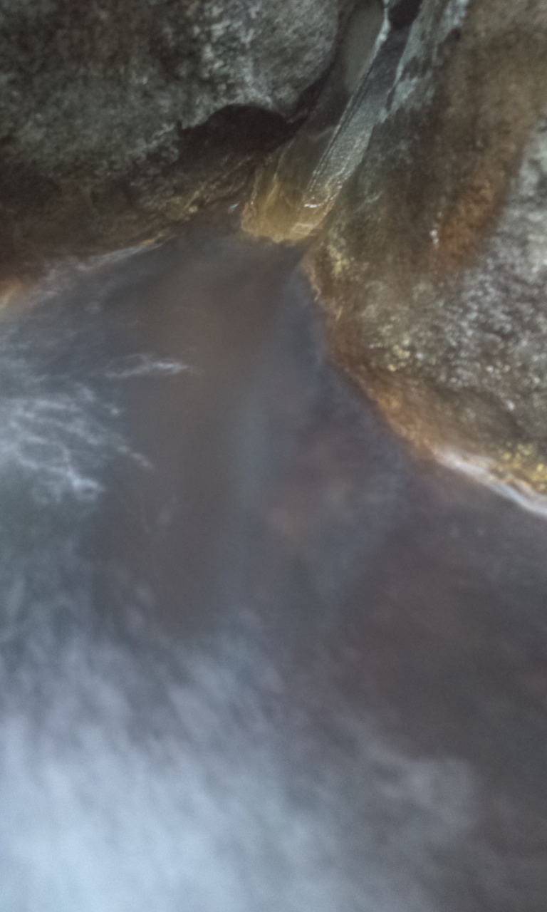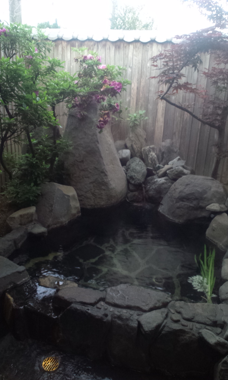 改めて湯口付近を見ると、投入湯が直接あたる部分が白くなってます。これは硫黄。源泉の素性のよさがわかります(^_^)