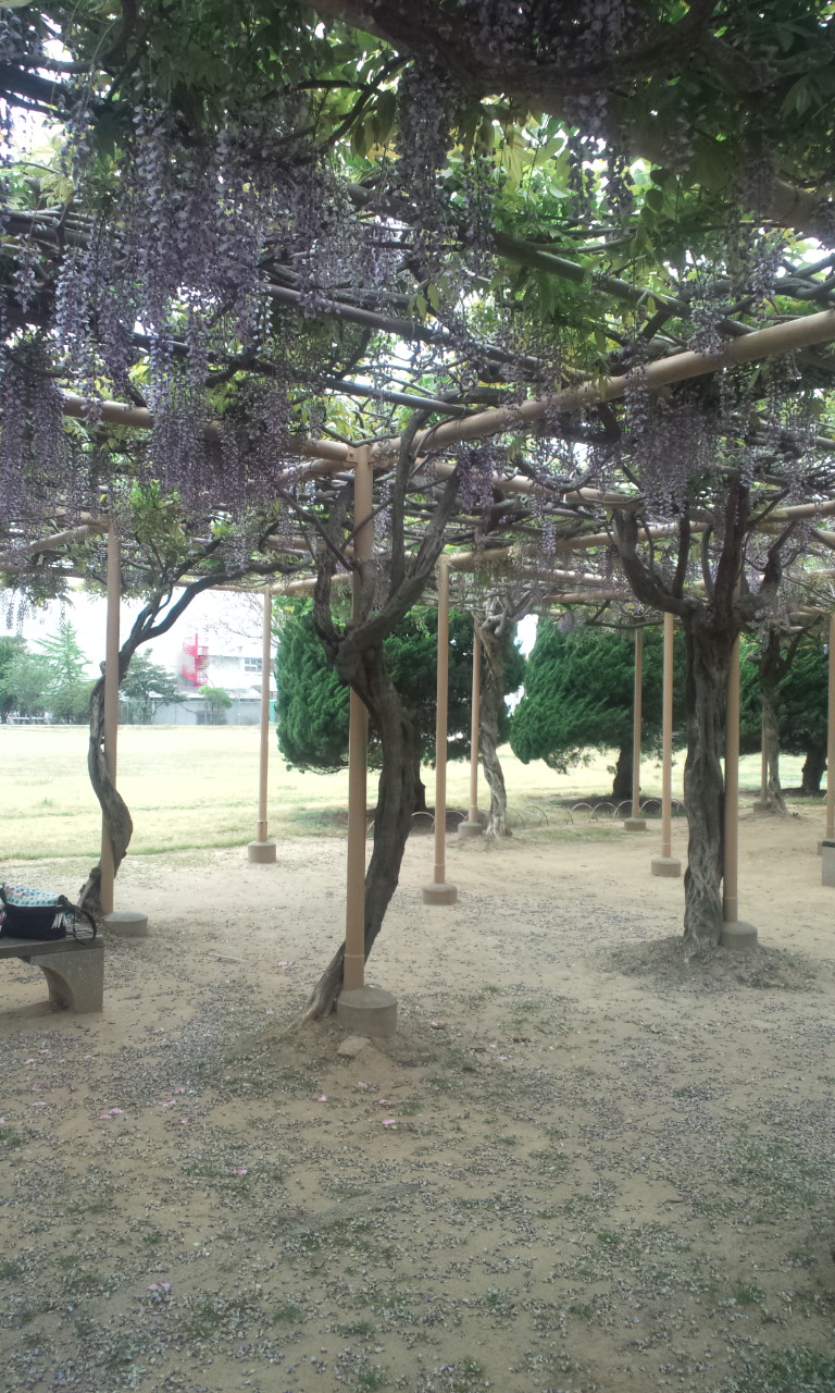 碑のあるところには藤棚があって、散った藤の花と強い香りが印象的でした。
