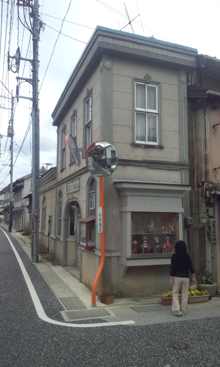 これ!どう見たって「古いパン屋さん」でしょう?そして今は人形飾ってると見えます。しかし中を覗けば明らかな出札窓口ヽ(^○^)ノ 2階に昇る急階段も見えてたぶん掛員控室だったのかにゃーたと(o^ O^)シ彡☆