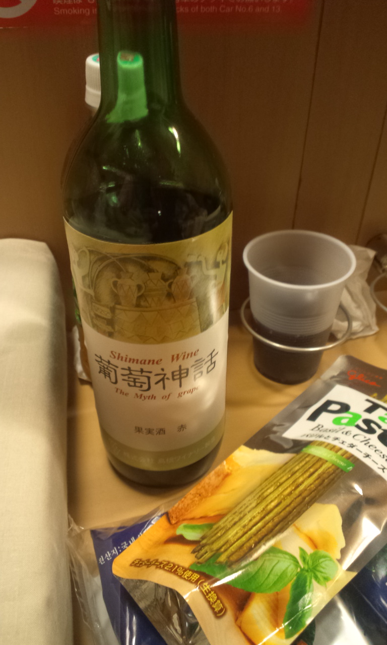 一畑デパートで仕込んだタイムセール品で出雲の地ワインをいただきます。イワシメンチカツは同種の中でもかなりおいしい部類でプチビクーリ♪ヽ(´▽`)/ 焼豆富煮は字面どおりですが、出汁が妙に甘いのが妙に合ったりして(*^▽^*)