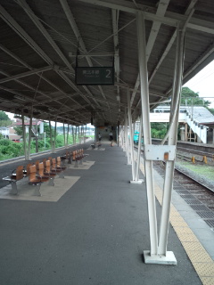 松島の絵要り駅標ですが、松島からはかなり遠いです。ただしウミネコが上空にたくさんいるのはやはり海が近いってこと。駅舎はイマドキの建て替えですが、ホームの古レールV字使いの柱は変わらず、趣がありますねヽ(*´▽)ノ♪