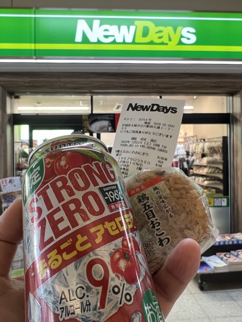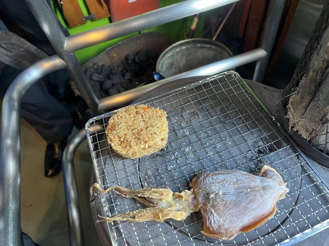 ストゼロアセロラノーマル缶と鶏五目おこわおにぎりを購入して戻り、おにぎりをだるまストーブで焼く! アセロラうぇーい(暴飲暴食)( ^ ^ )/■ ※急行と普通や快速の指定席券は途中下車しても無効になりません