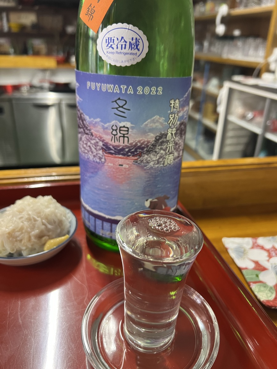 淡麗辛口で酸味と旨味がほどよい綿屋冬綿2022特別純米、ほんのり旨味がくっきりと舌に乗っかってくる綿屋純米大吟醸斗瓶採り雫酒、そしてナッツ風味がある結ゆい特別本醸造。結ゆいを呑むと酒蔵被災の救援になるそうです!