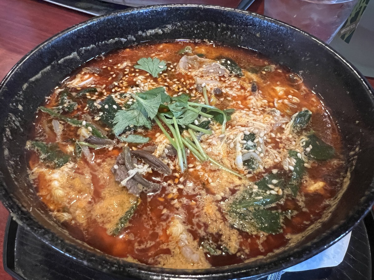 きのこをロースターで焼いたら煮るより美味しい!と、原理上当然ではありますけど^^;焼肉八兆で学んだ私です。そして今日は7本入りチャレンジは辞めて過去と同本数の5本でいただくユッケジャンスープは正直ガチ激辛寸前くらいには辛くて、焼肉八兆のイエロー唐辛子メニューではいちばんストレートに辛いと思うんよね…来月は7本入り行きたいな!(^_?)?☆