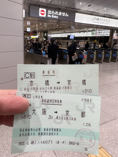 なぜか大阪近郊区間は大阪-西明石以外の新幹線を含んでおり、かつ岡山へ抜ける線形のため京都-新大阪間は新幹線のほうが在来線より実キロが0.1km長いため、特急料金支払ってもこちらのほうが長く乗れます。そしてスタンパーくださった掛員さん、やおらこのスマホ覗き込んで「あ、いいです」…アレだ、掛員の顔を映してなければ動画OKってことだなこれは!^^;