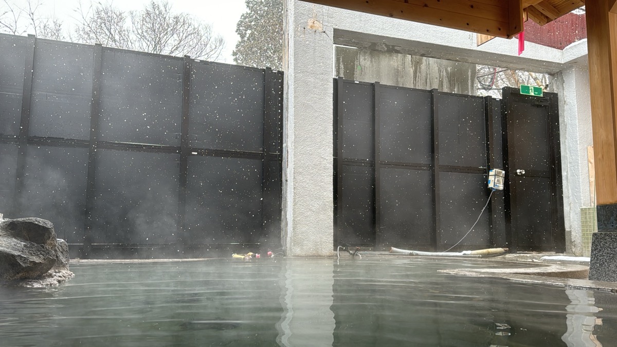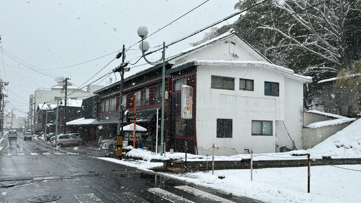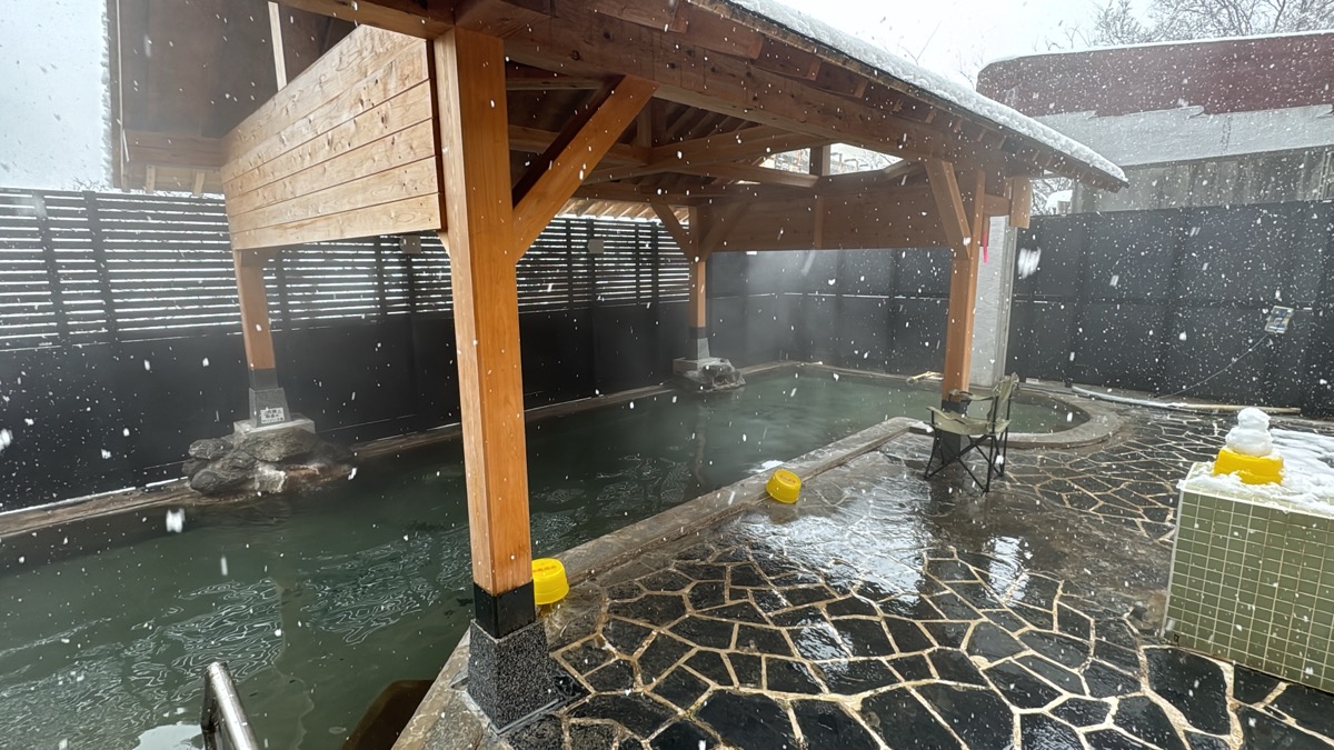 鳴子温泉駅から徒歩800m、今朝シャワー浴びてないんで500円お支払いして鳴子温泉旅館すがわらの大露天風呂に雪見(・∀・)イン!!(独泉後の撮影&投稿)