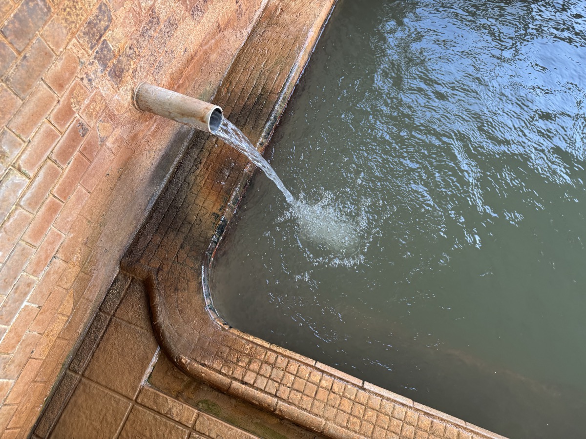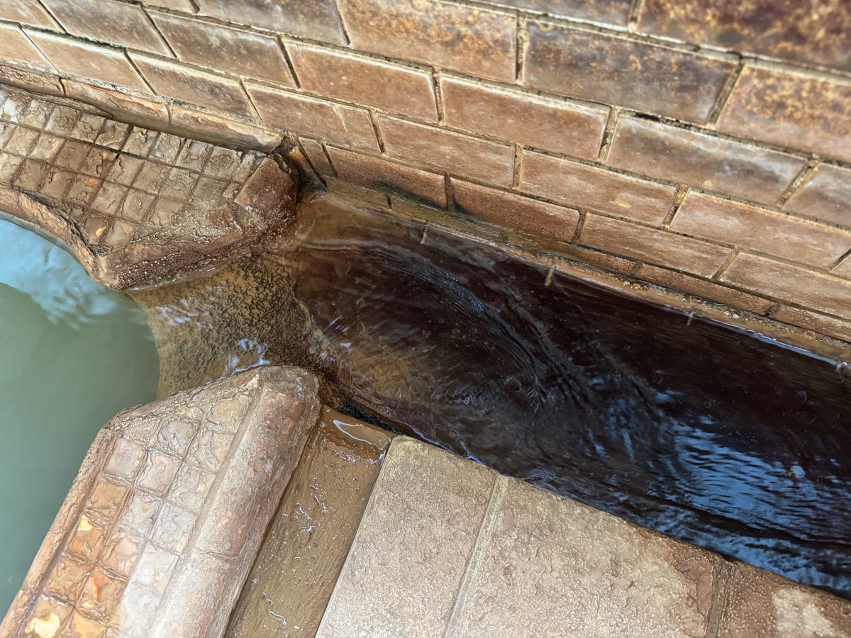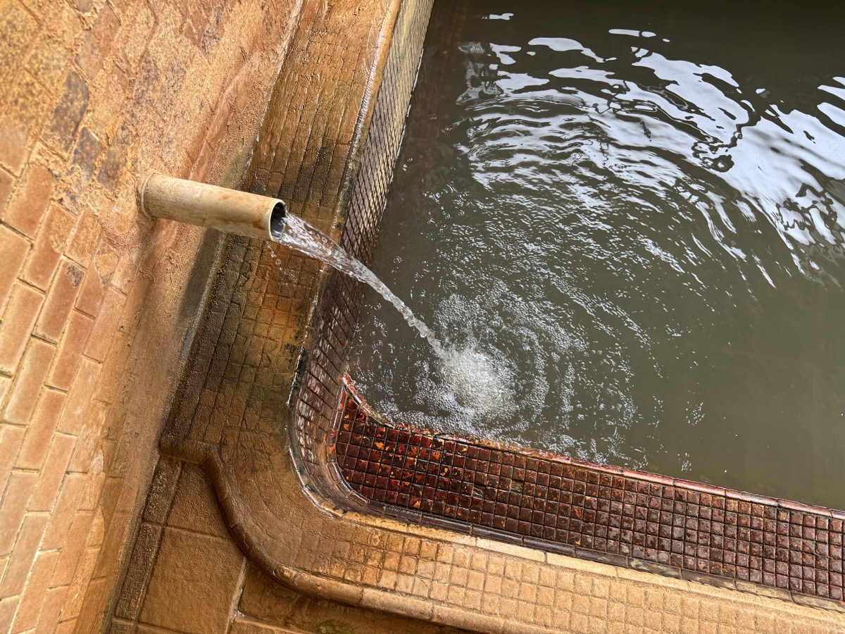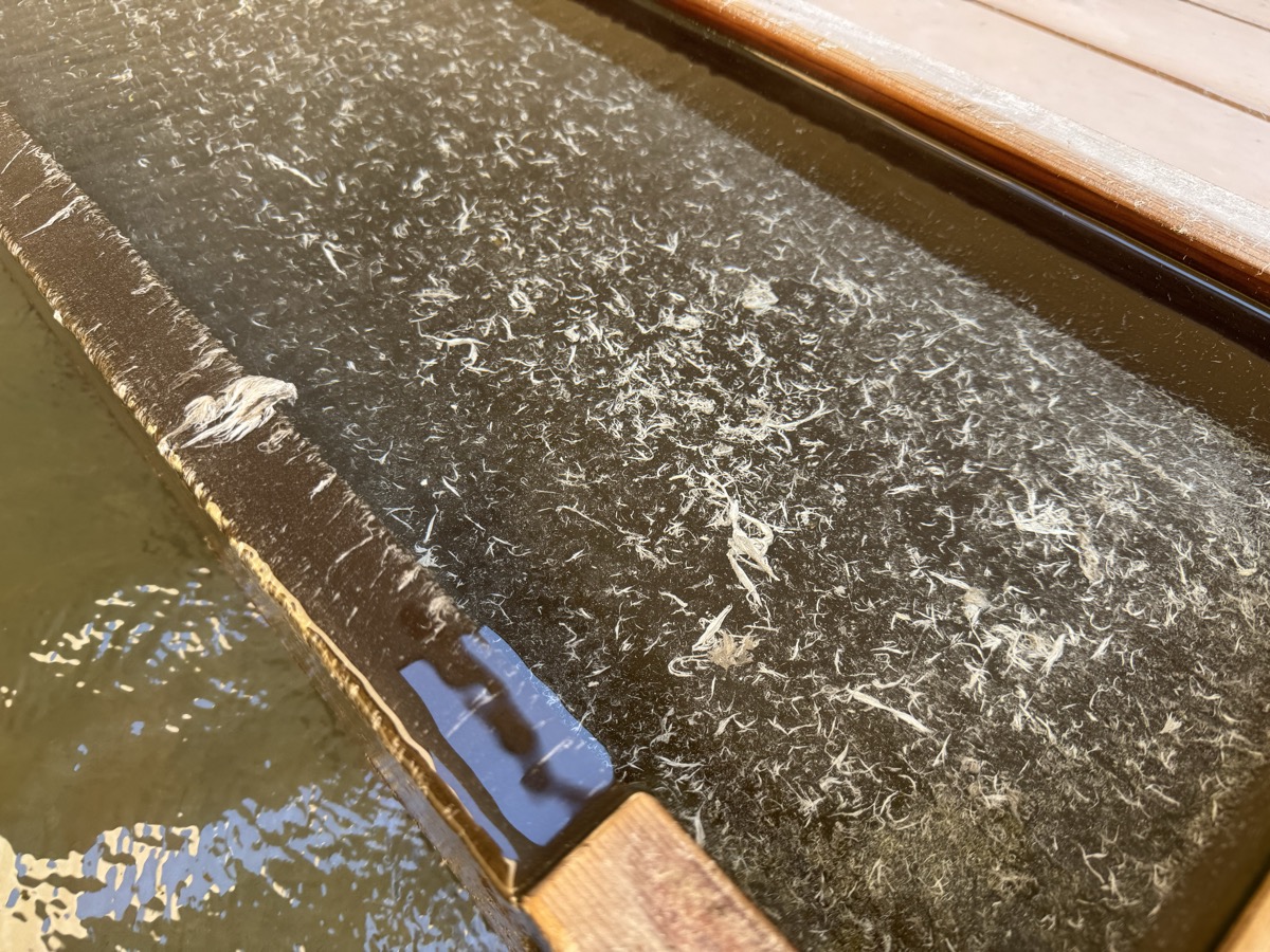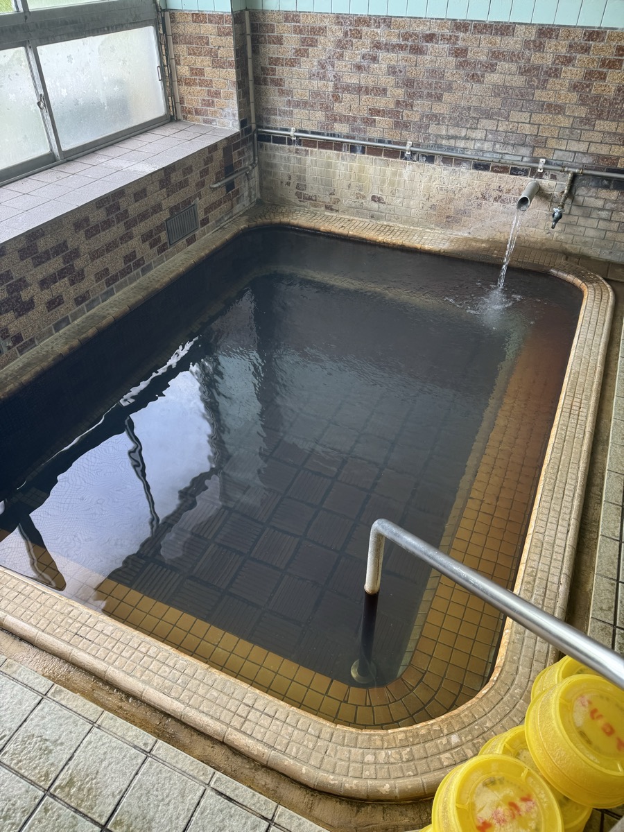 ただいま底41℃強で表面42℃強、気温上がってくる中ちゃんと調節されてます(*^◯^*) 微硫黄臭+微々焦げ硫黄臭、肌触りふつう、クリーム色のゴム状湯華たくさん! じっくり浸かりましょう…ヽ(´▽`)/