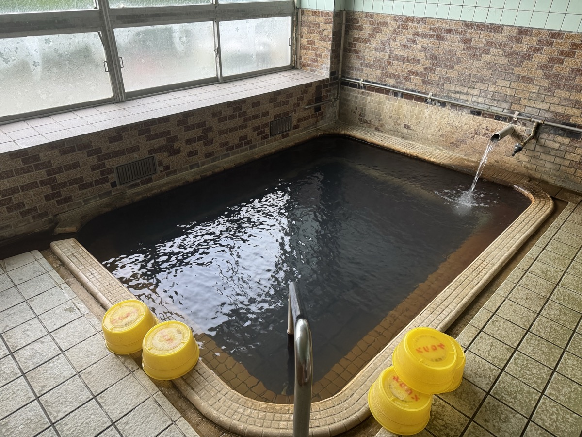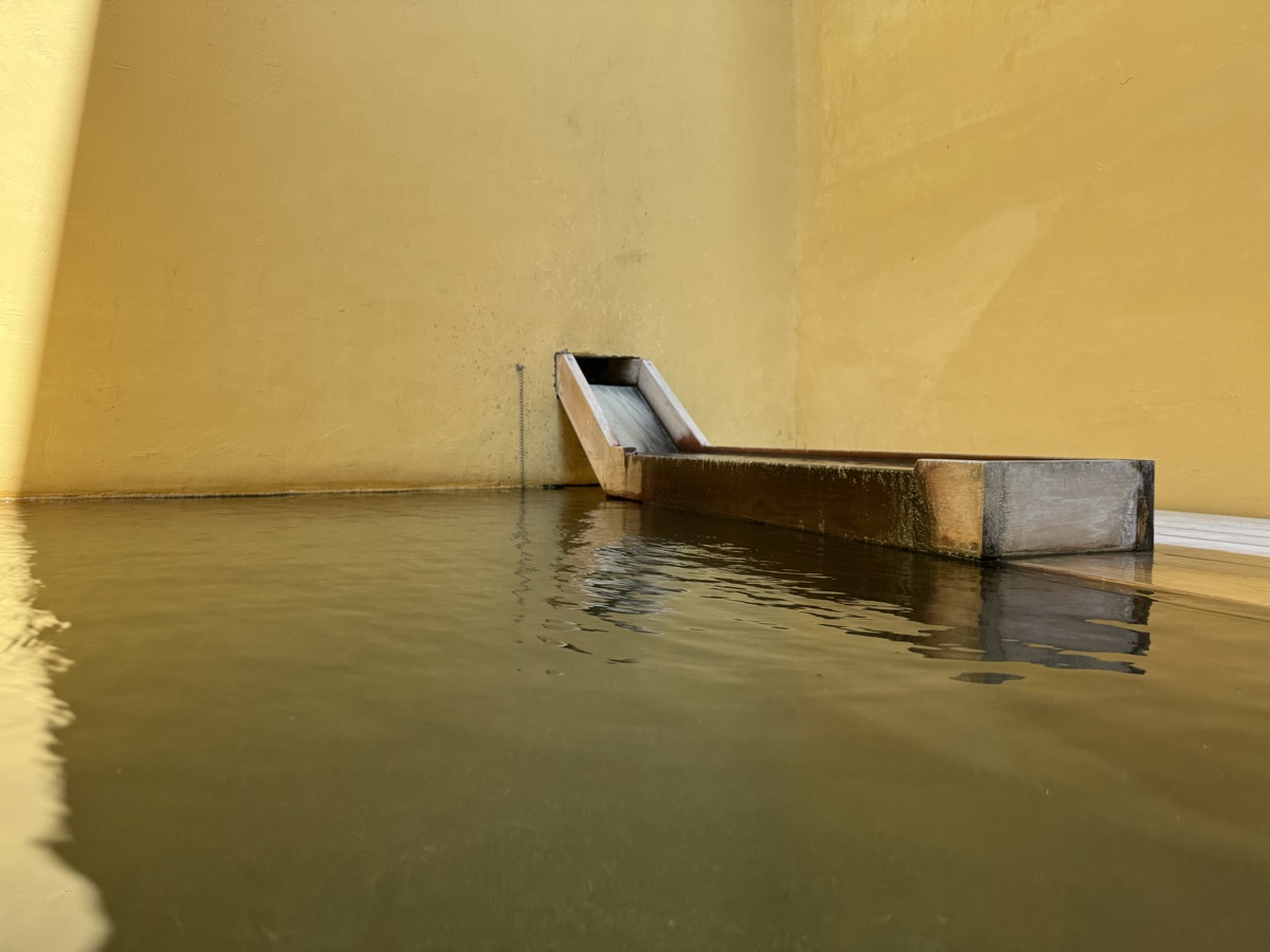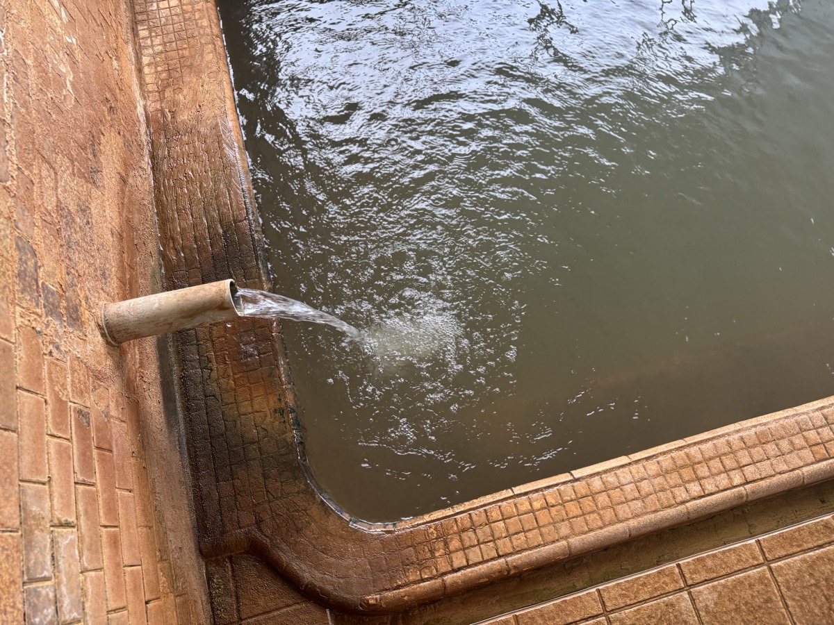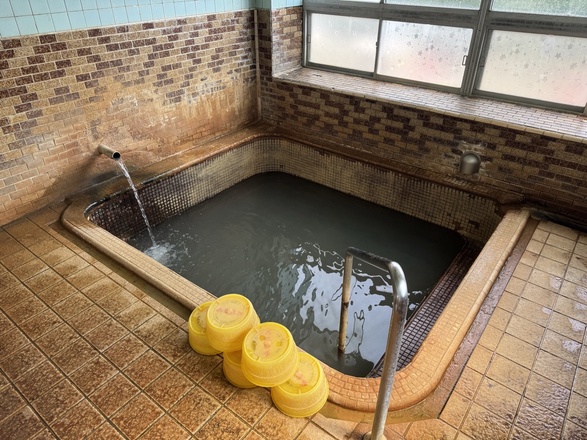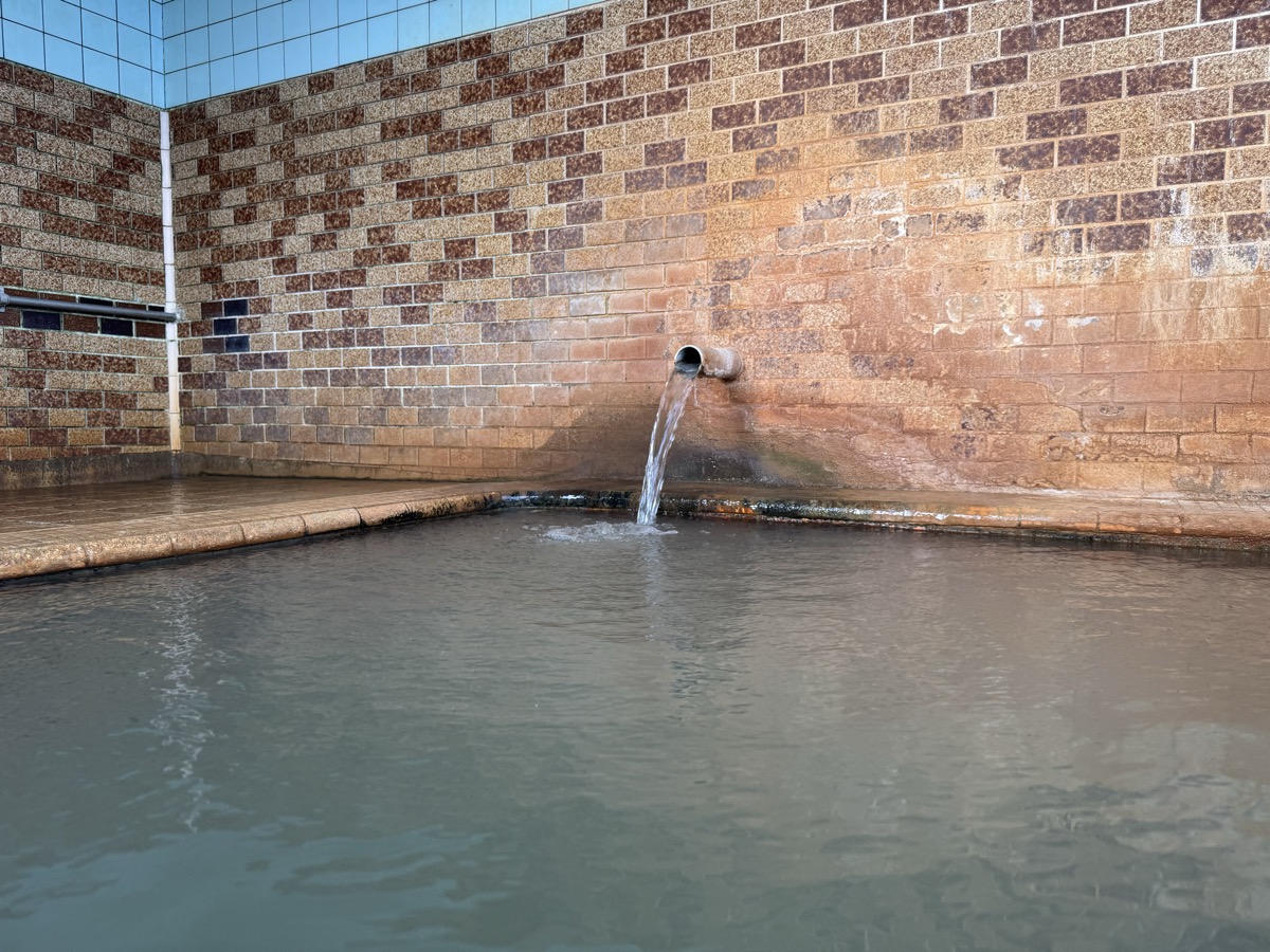ただいま底41℃強で表面42℃強、気温上がってくる中ちゃんと調節されてます(*^◯^*) 微硫黄臭+微々焦げ硫黄臭、肌触りふつう、クリーム色のゴム状湯華たくさん! じっくり浸かりましょう…ヽ(´▽`)/