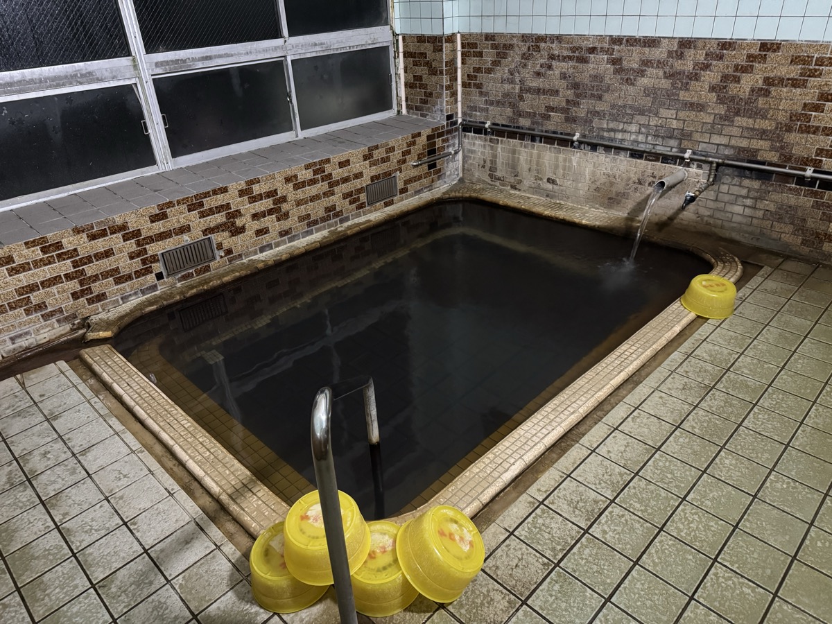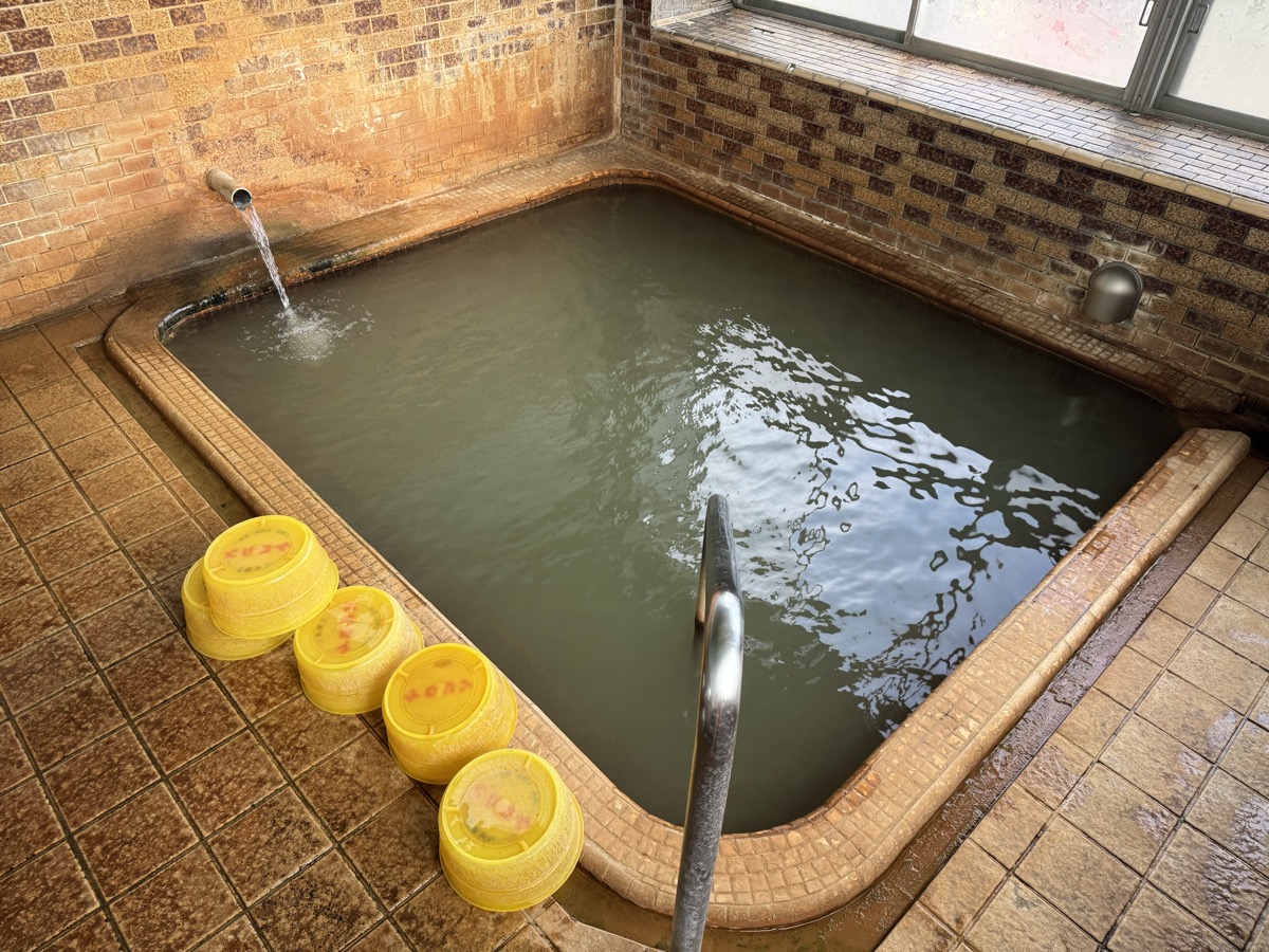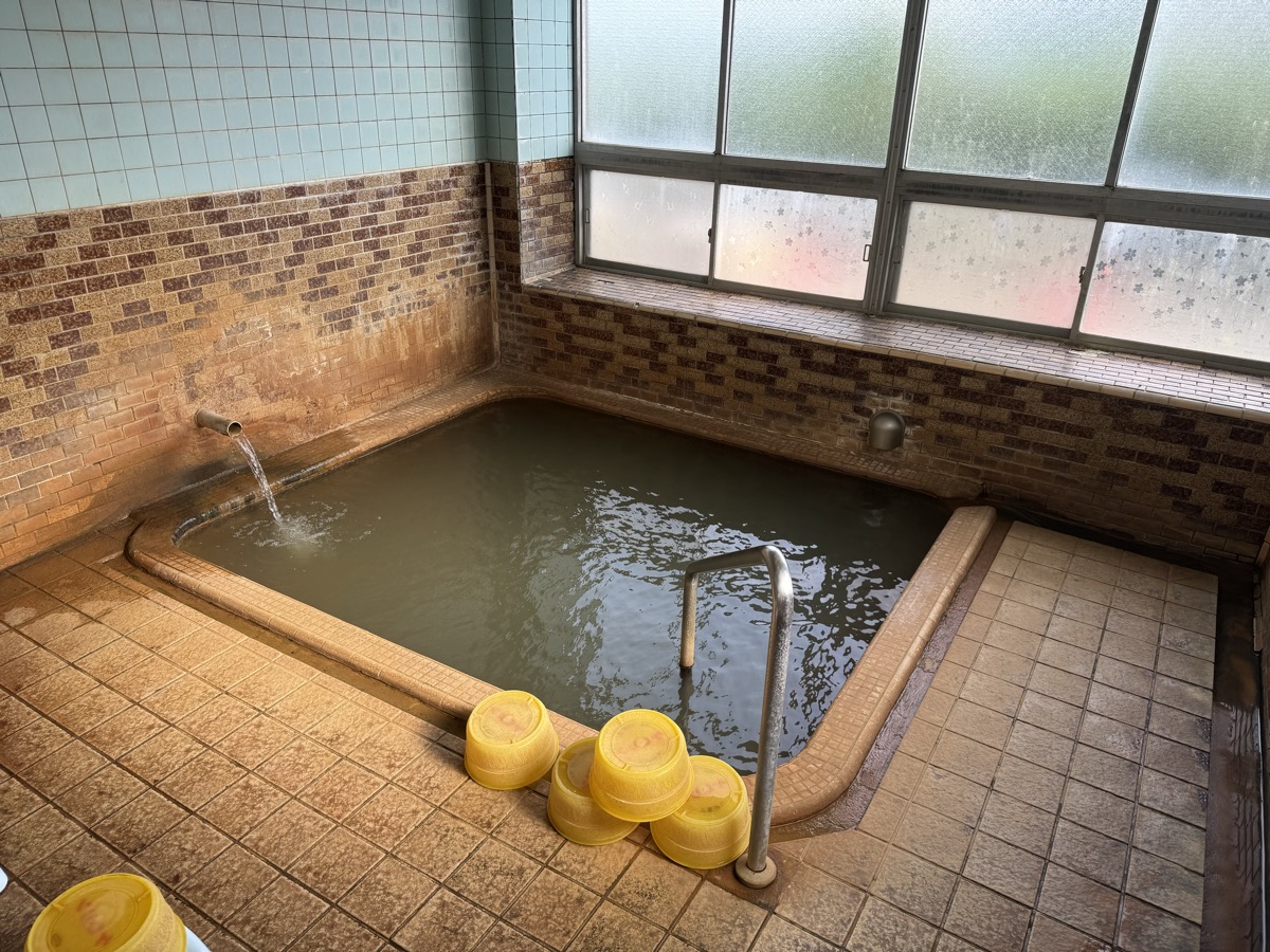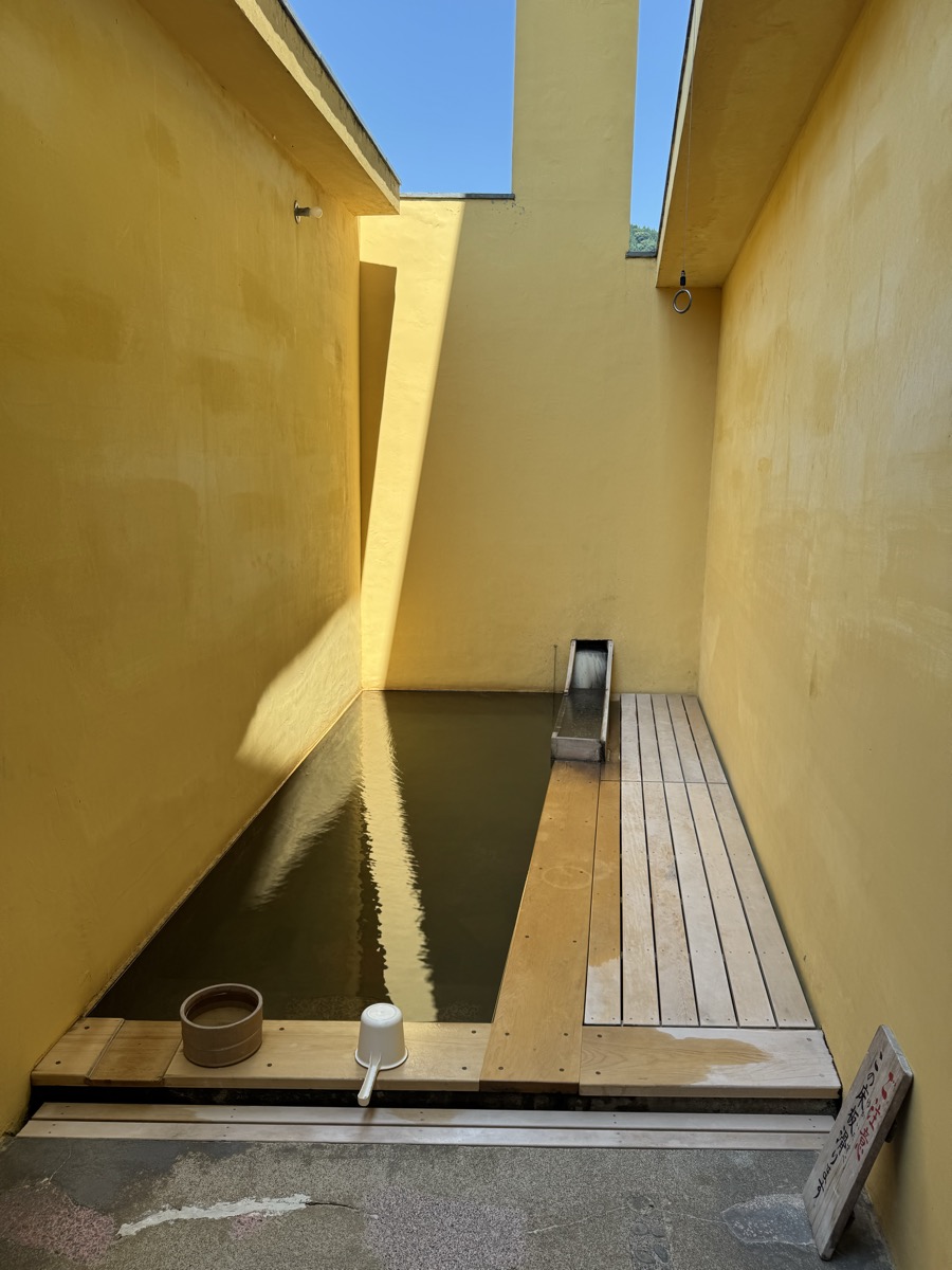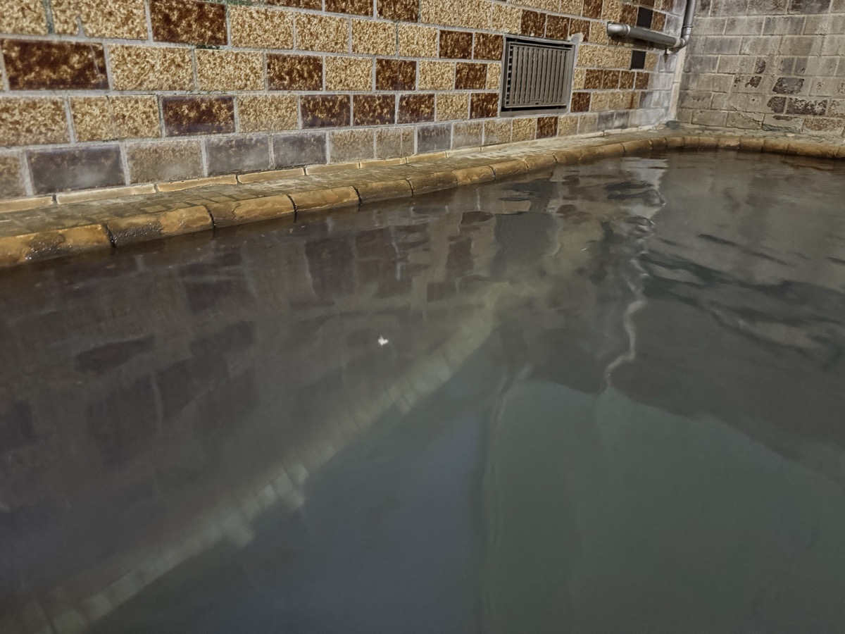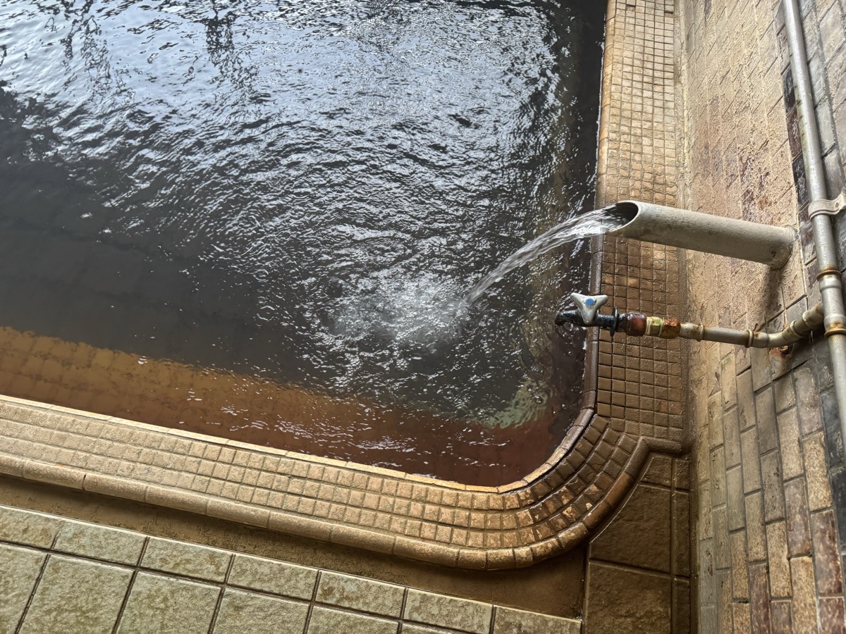 ただいま底41℃強で表面42℃強、気温上がってくる中ちゃんと調節されてます(*^◯^*) 微硫黄臭+微々焦げ硫黄臭、肌触りふつう、クリーム色のゴム状湯華たくさん! じっくり浸かりましょう…ヽ(´▽`)/