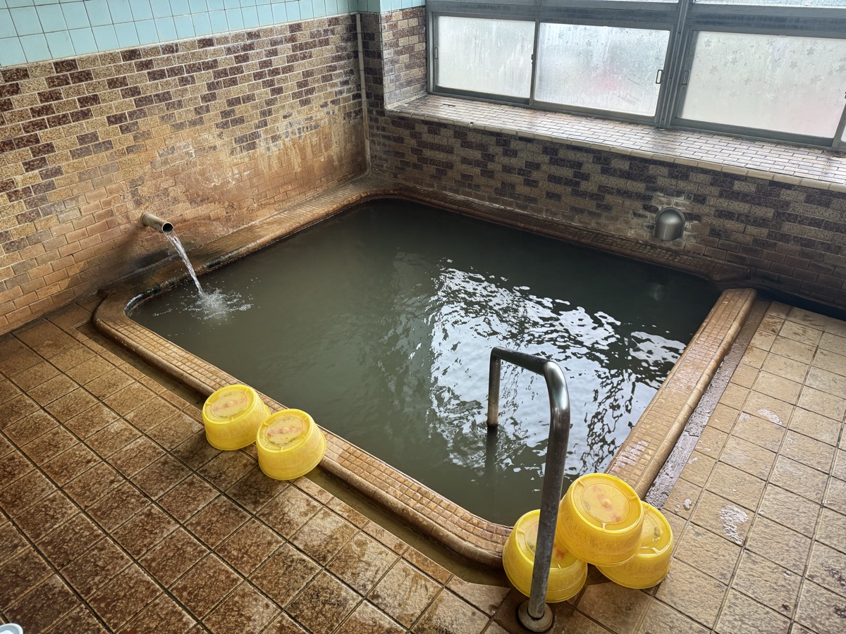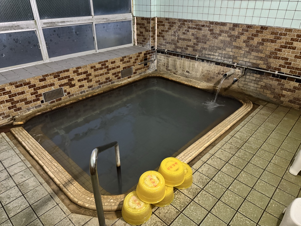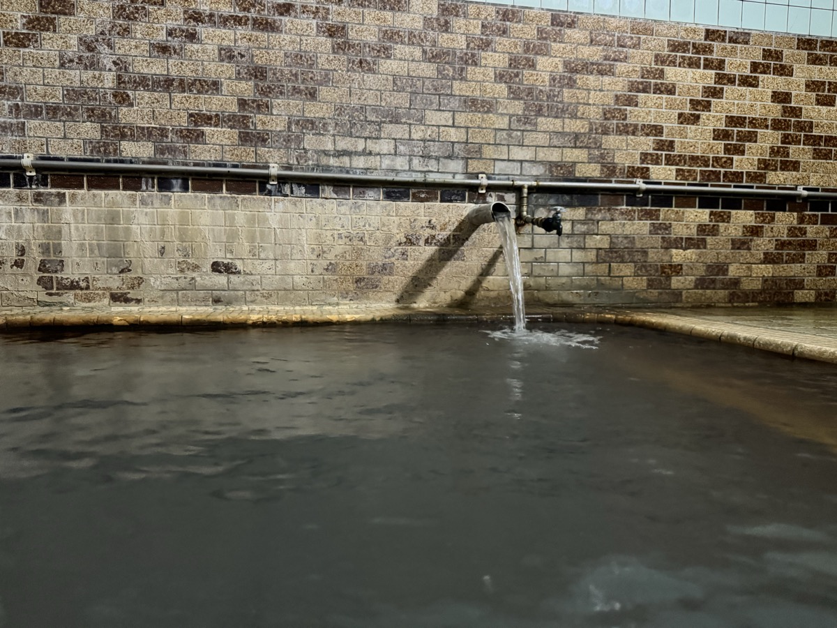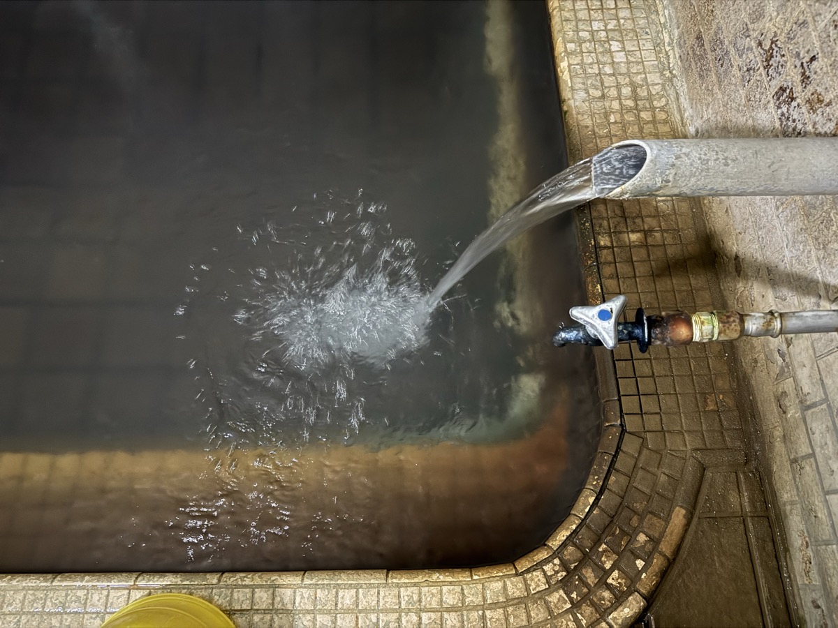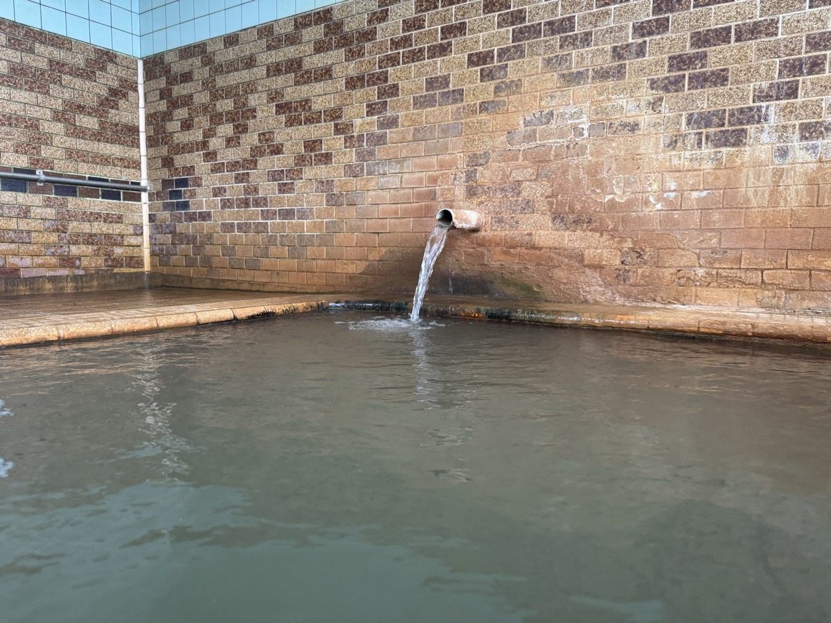 ただいま底41℃強で表面42℃強、気温上がってくる中ちゃんと調節されてます(*^◯^*) 微硫黄臭+微々焦げ硫黄臭、肌触りふつう、クリーム色のゴム状湯華たくさん! じっくり浸かりましょう…ヽ(´▽`)/