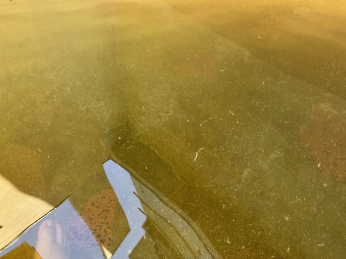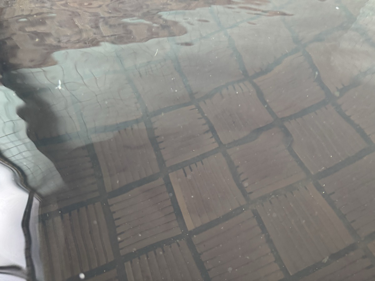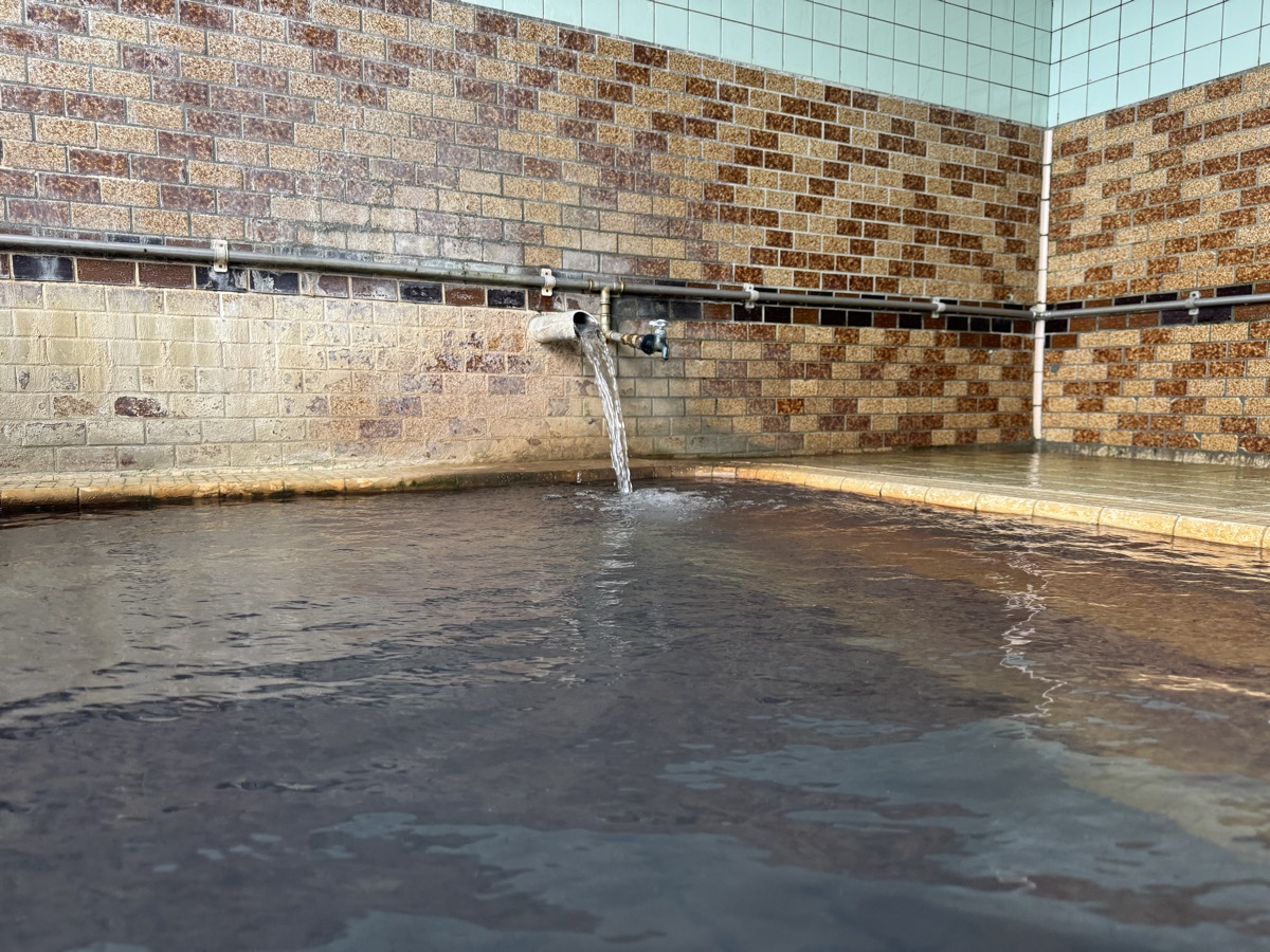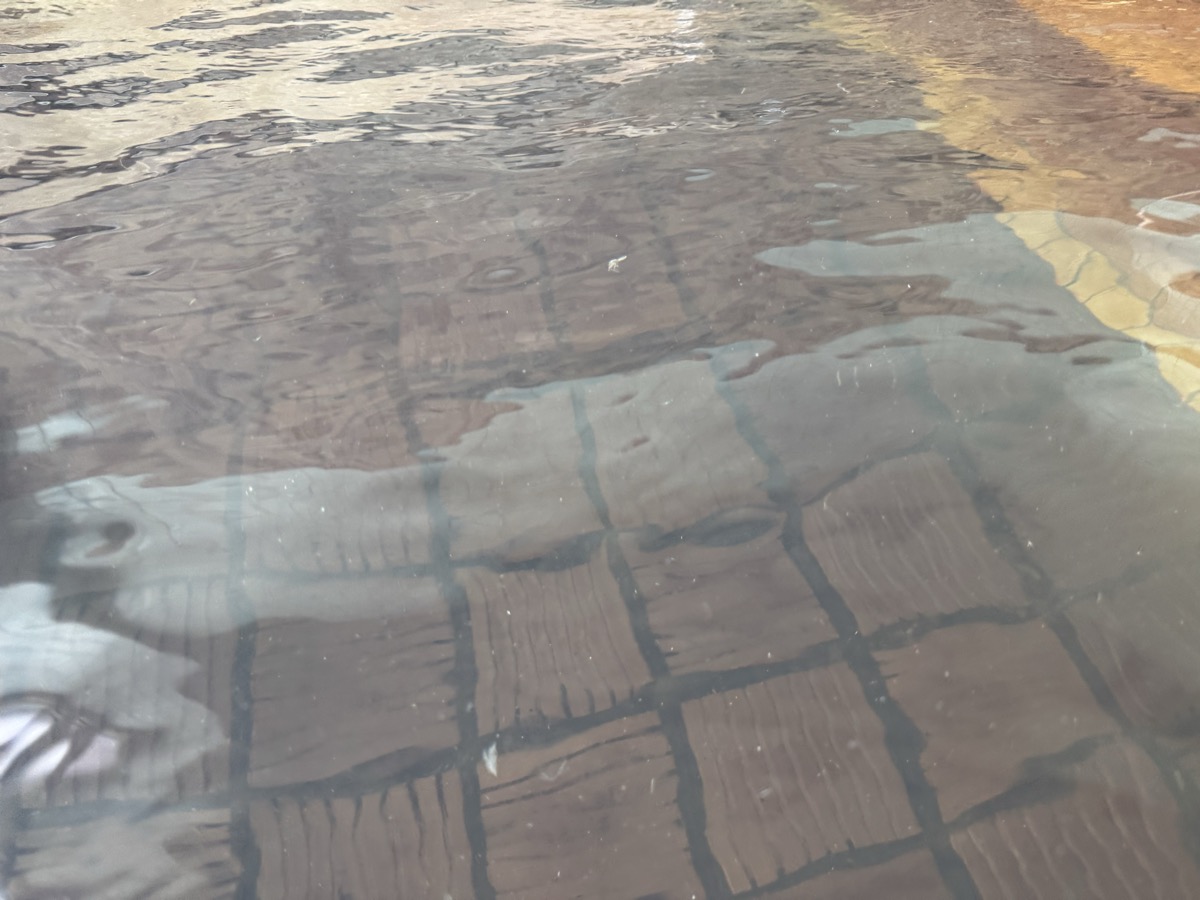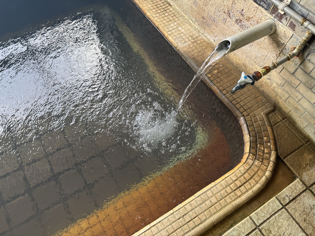 ただいま底41℃強で表面42℃強、気温上がってくる中ちゃんと調節されてます(*^◯^*) 微硫黄臭+微々焦げ硫黄臭、肌触りふつう、クリーム色のゴム状湯華たくさん! じっくり浸かりましょう…ヽ(´▽`)/