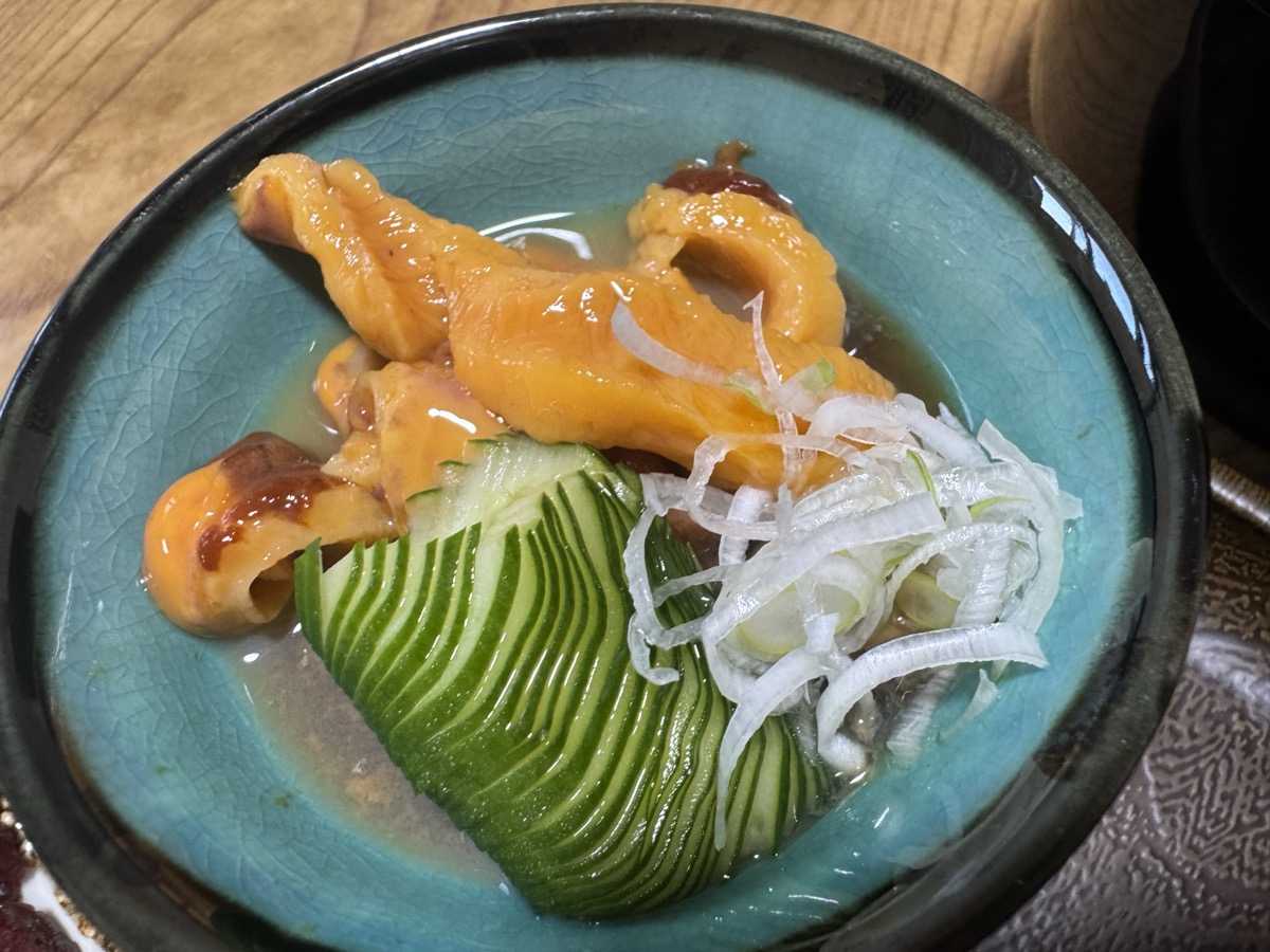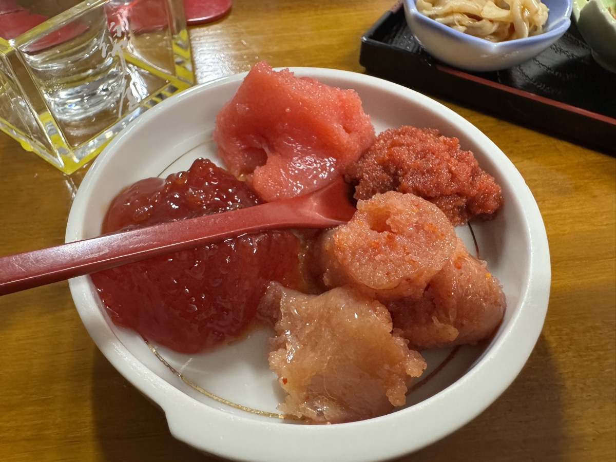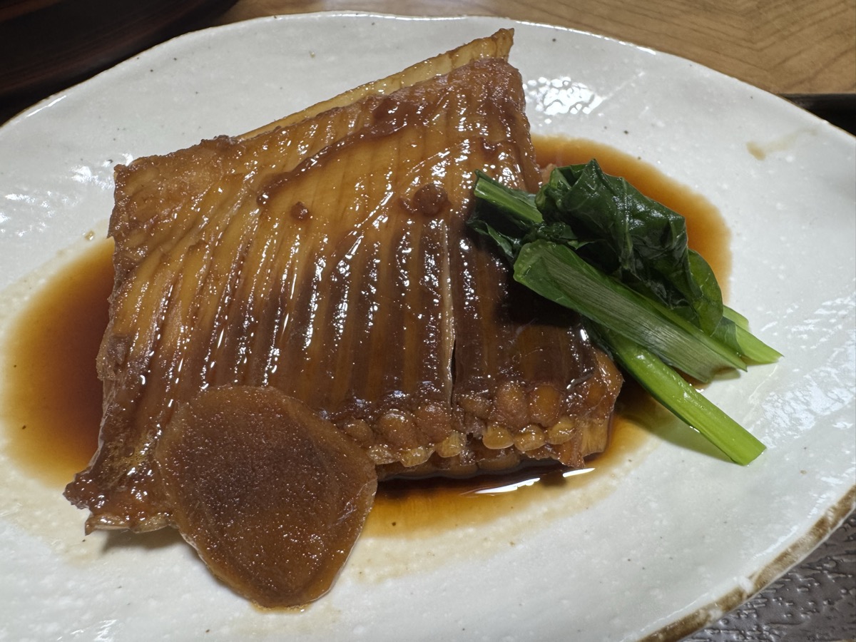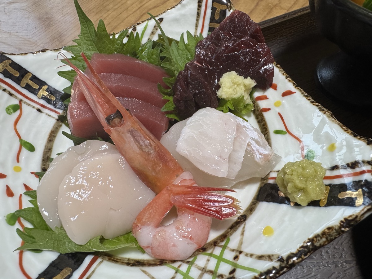 ホヤは身厚のがたっぷり、噛むほどに甘味塩味酸味苦味すべてを味わえる極上の素材です♪───O(≧∇≦)O────♪ 刺盛りは赤身・ホタテ・甘海老・なんとガチえんがわ付き鮃ヒラメ\(^ω^)/、そしてミンククジラ☆*:.。. o(≧▽≦)o .。.:*☆ 最近の鯨肉はふつうに魚類みたいに食べられますよね(^^)v エイヒレ=カスベは甘辛い煮付けで、今回お酒つけなかったのを少しだけ後悔です^^;