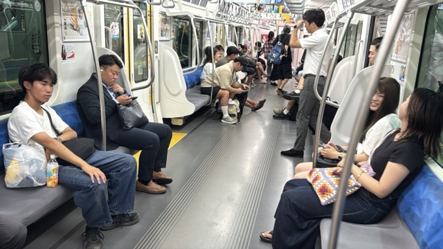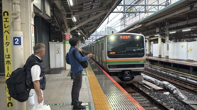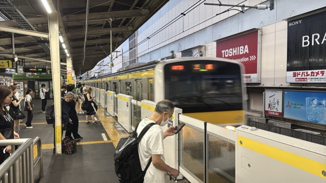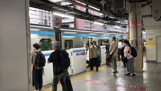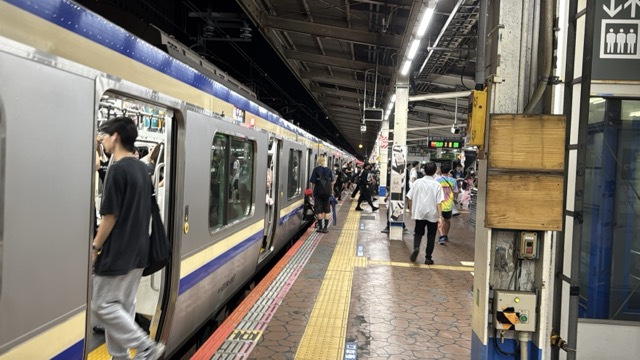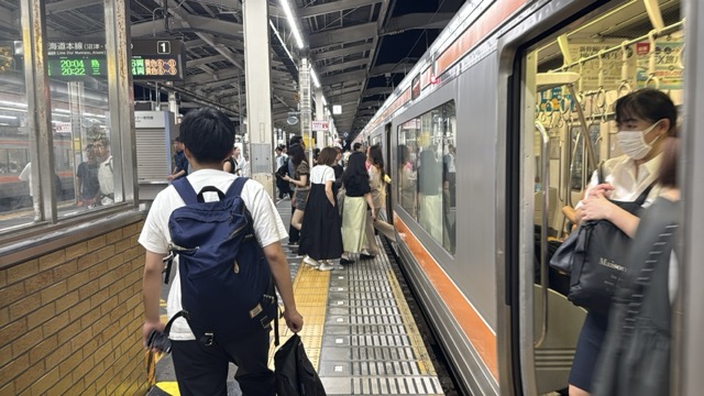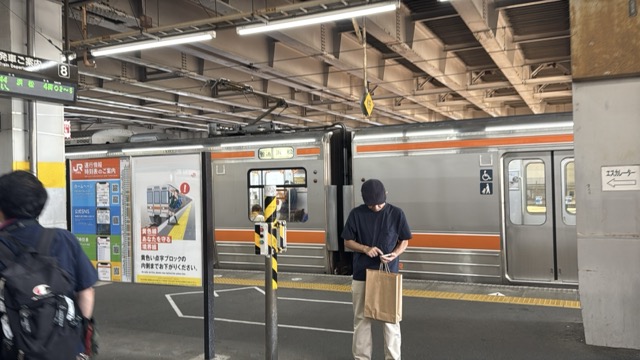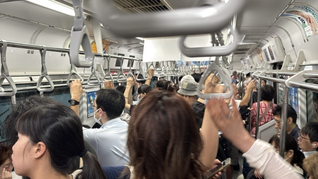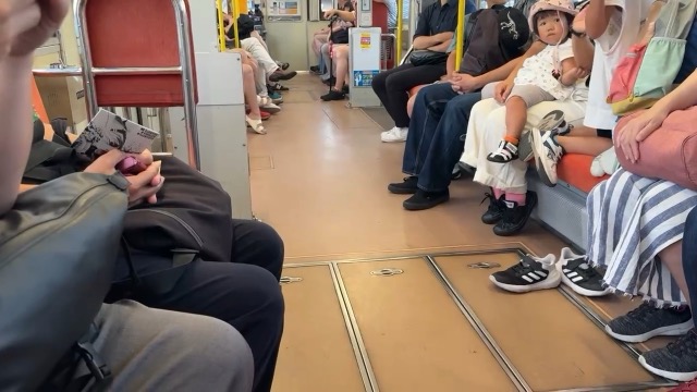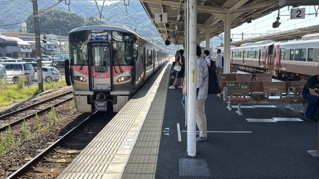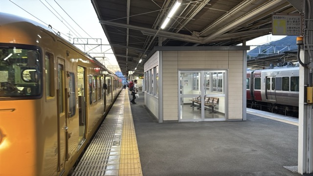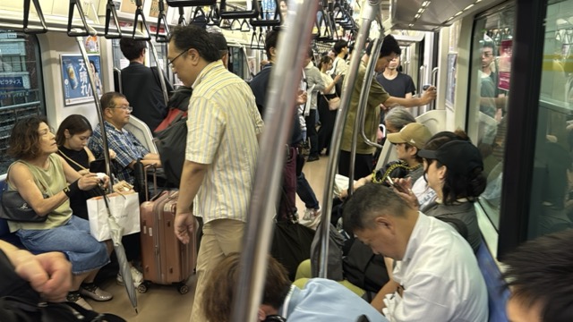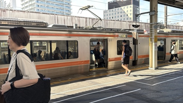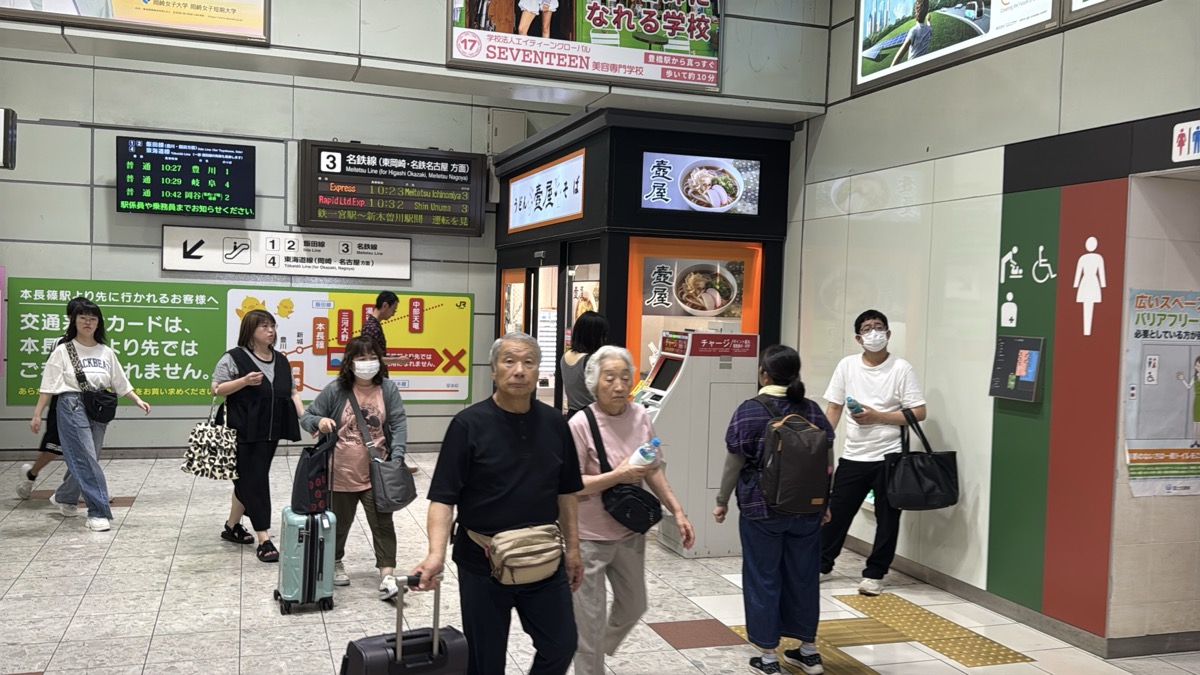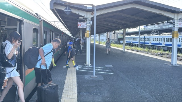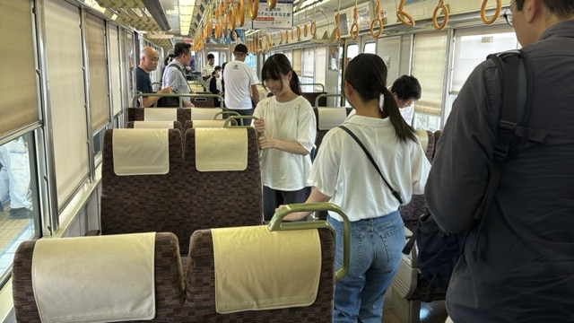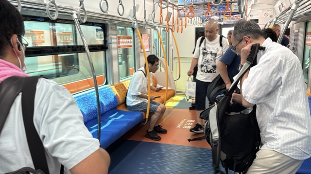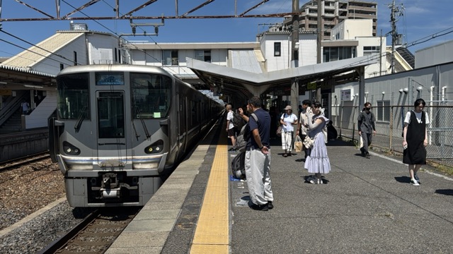 去年春から同一ホームに改善されましてホントありがたく。そして新快速は名古屋駅での2分間停車のドアー開で蒸し風呂のような暑さに、もうおかしいぞ気候…(月並み)。元気なくちとうとうとしました。こちらは混んでて通路側相席。