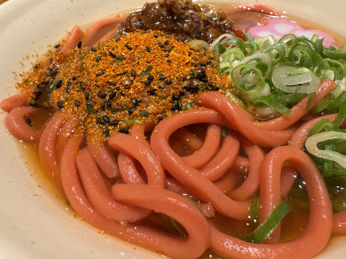 小林製薬紅麹問題で一昨年春に発売中止も色素変えて復活、さらに品名から「がんばれカープ」が取れましたがその意味は謎。赤いでろでろ系うどん麺に甘辛い牛肉煮をトッピング、辛くはありませんが唐辛子足したらけっこう辛くなって汗だくの5分半完食完飲のごちそうさま!( ^_^)/~