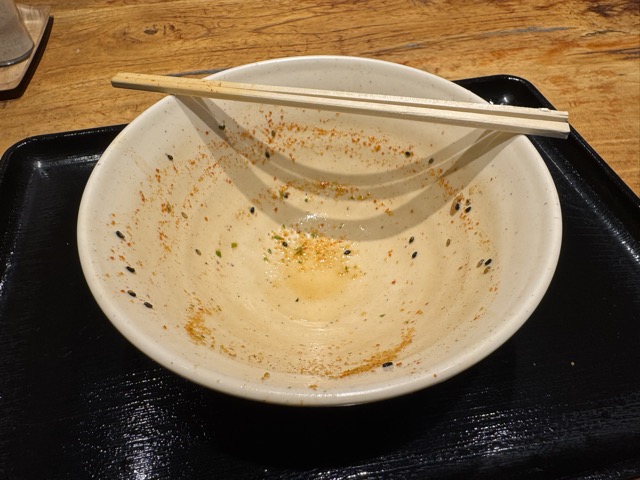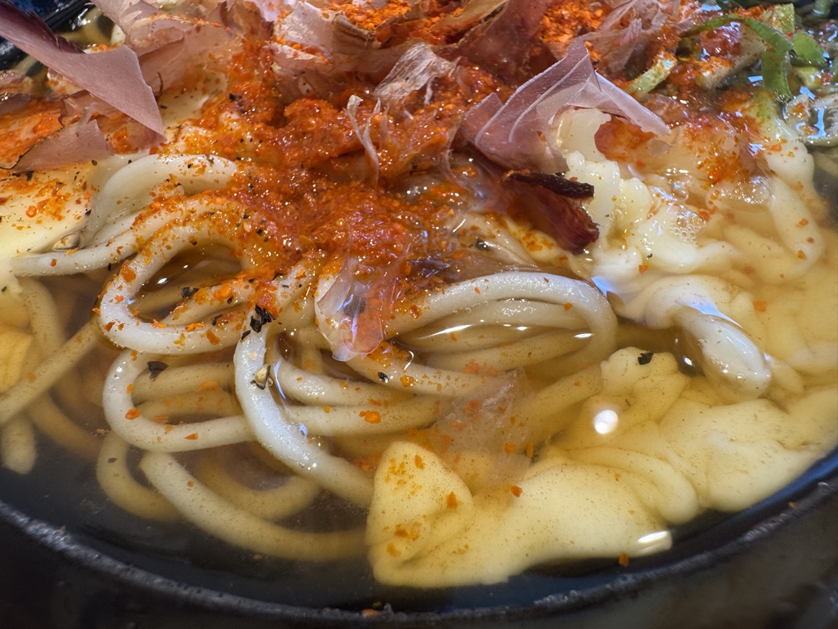 この鰹節ととろけるチーズと薄口出汁つゆの相性が悪魔的に良過ぎてさらに唐辛子ブースト(((o(*゚▽゚*)o))) つゆもまさかの乳化するのでたんとも水飲み干して3分半完食完飲ゴチでした!( ^_^)/~