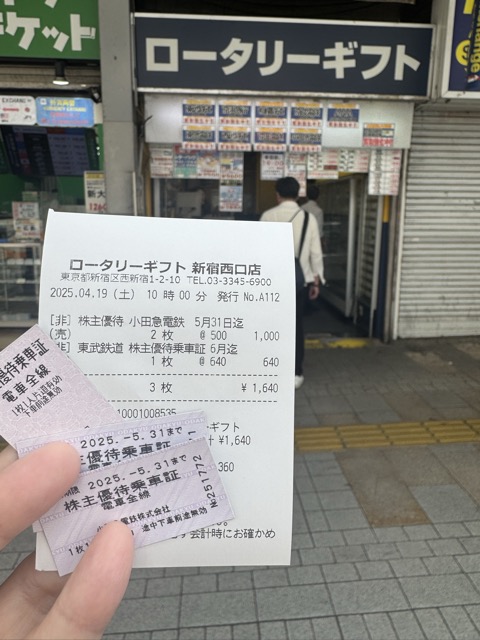 1分遅着の終点新宿駅で株主優待乗車証500円調達にてぶじ下車、トイレ後に大人の休日倶楽部ビューカードSuicaで入場して普通千葉行きにて今回の旅ラストラン