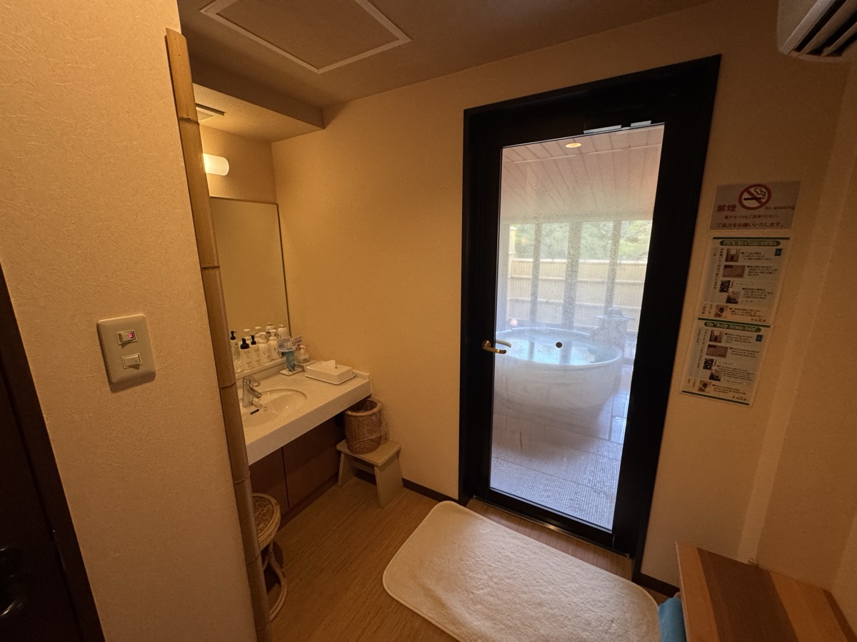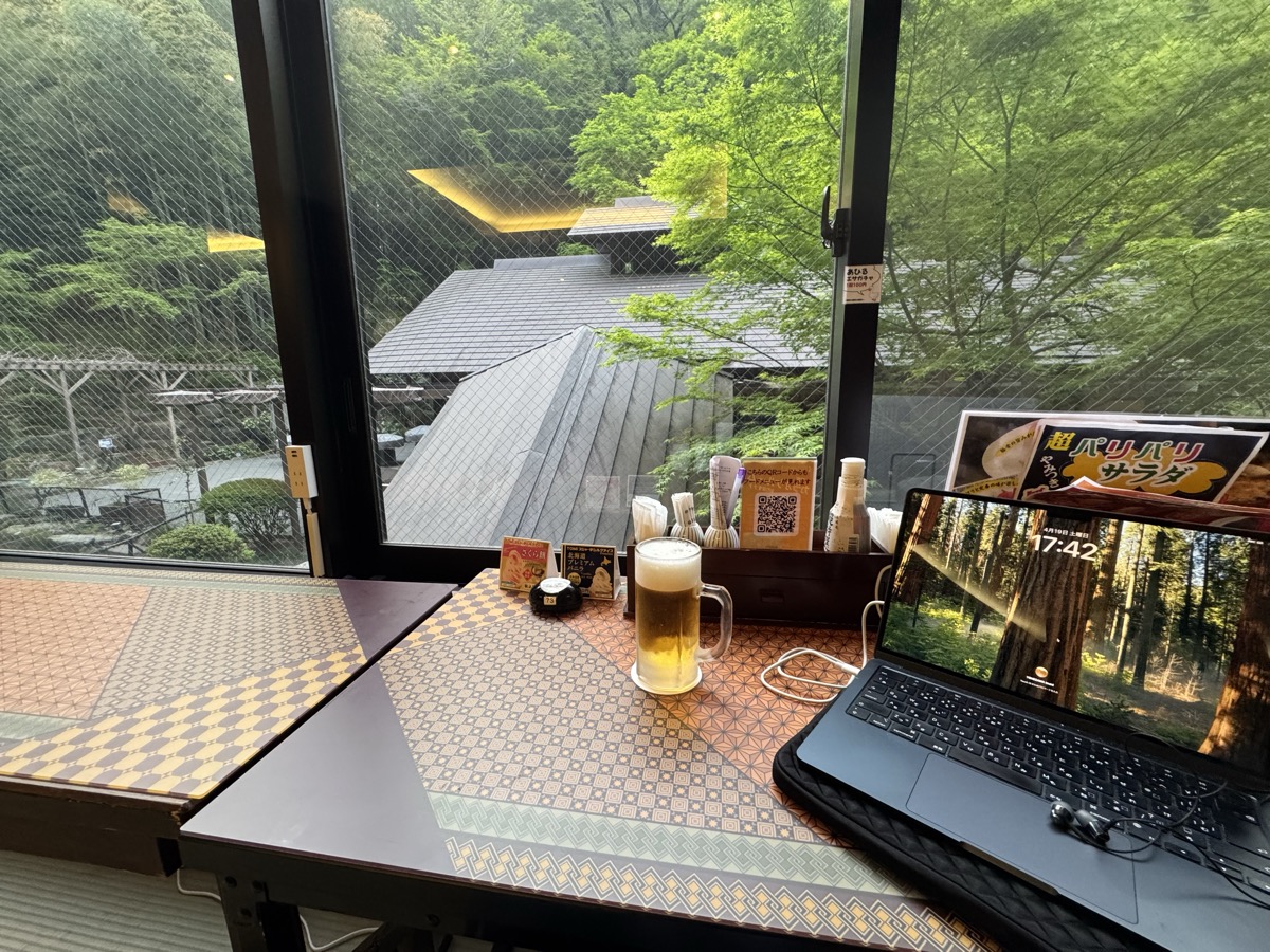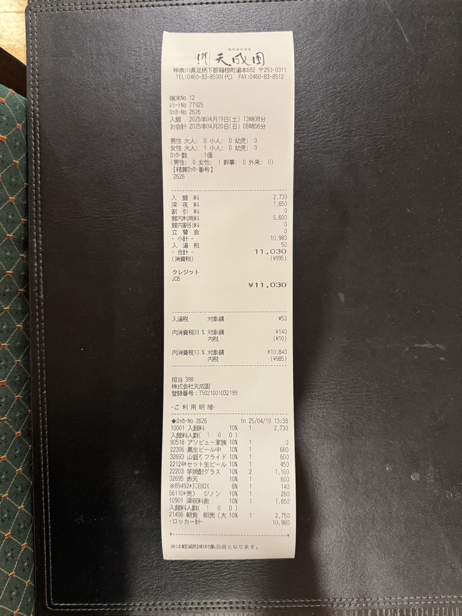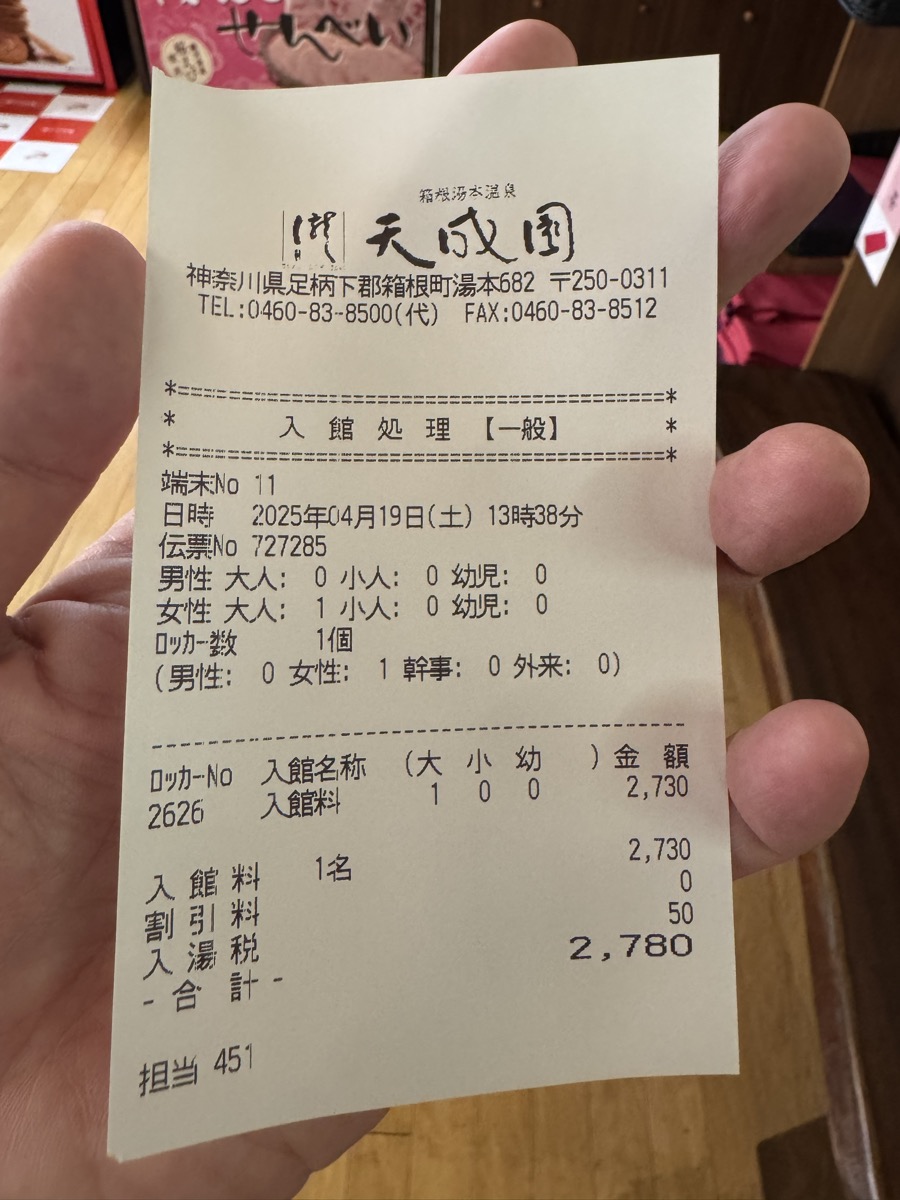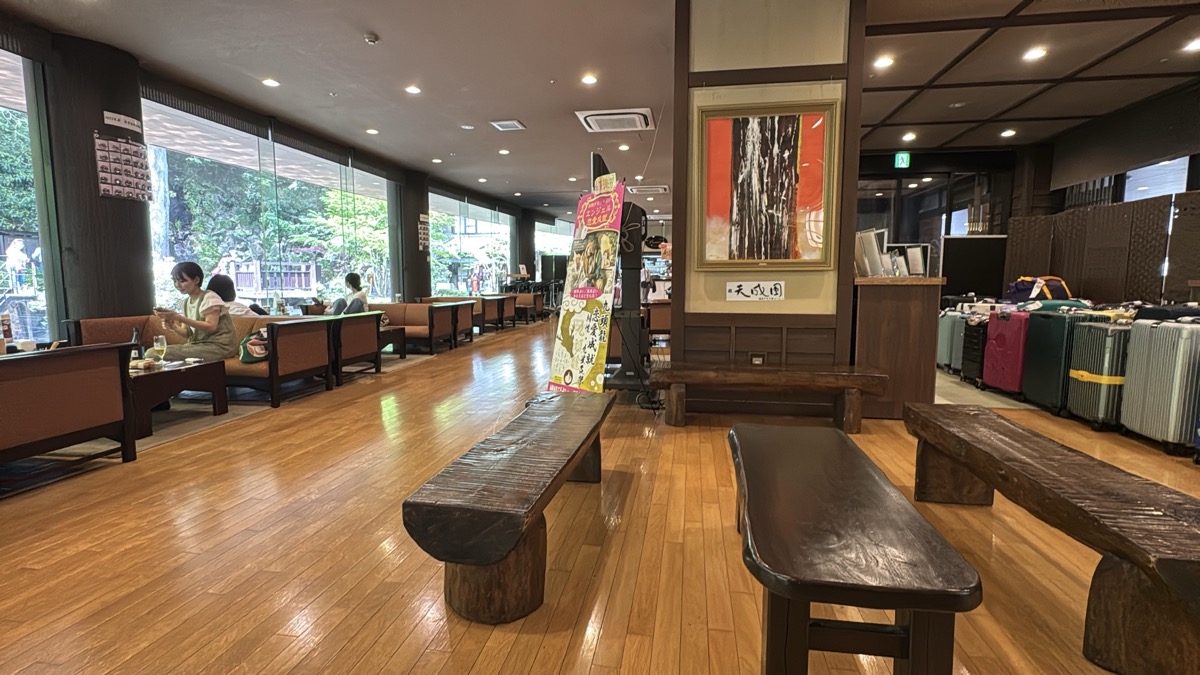 なおこちら、Yショップ「テンセイマート」がお土産屋に併設されており、定価で酒類も発売してるんですが、デイリーヤマザキと違いYショップはコンビニではなくボランタリーチェーンだよなぁ、という細部はともかく、宿泊客はお部屋で購入物を飲食できるそうなんですが、日帰りの客はここで買ったものは館外の庭園でしか飲食できないそうで…^^; ネット上のレポートだとここ憩い処で購入したものを飲食可能のように書かれてるものがありますが、違うのでご留意を!(^_?)?☆