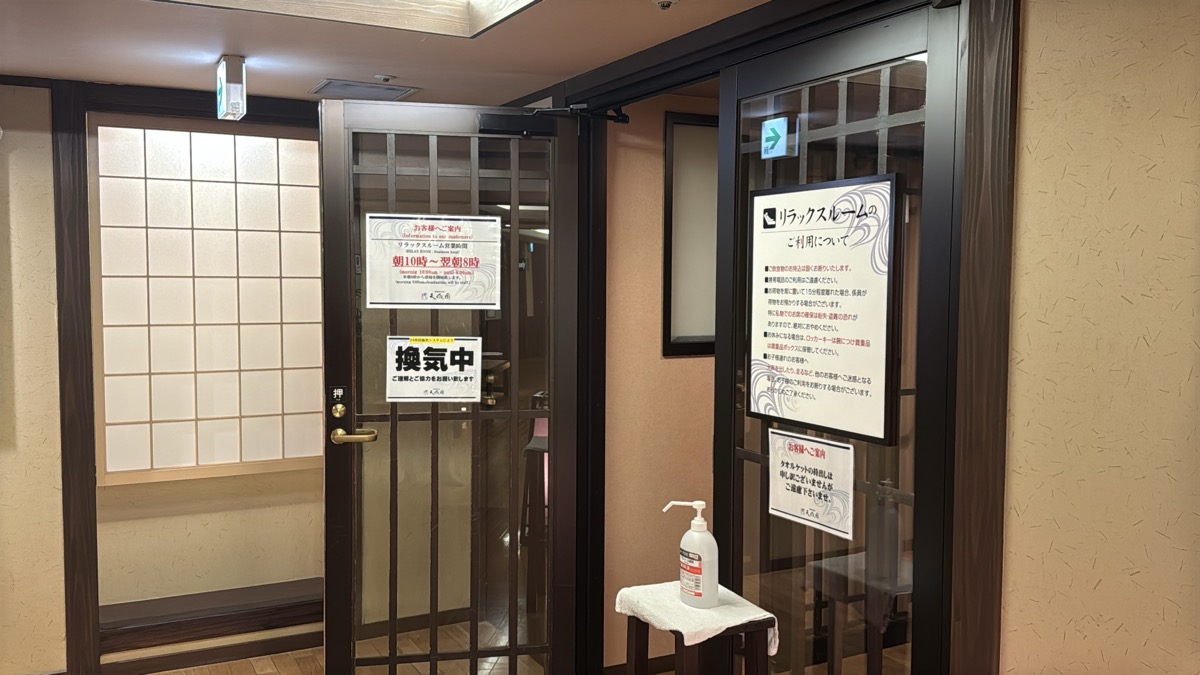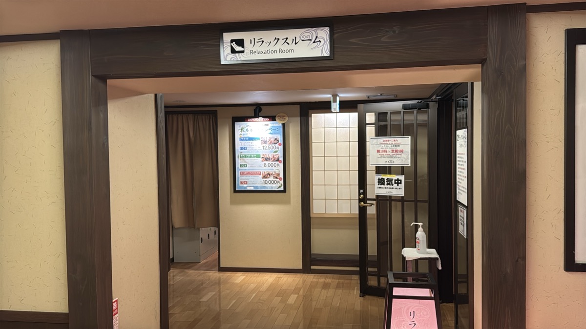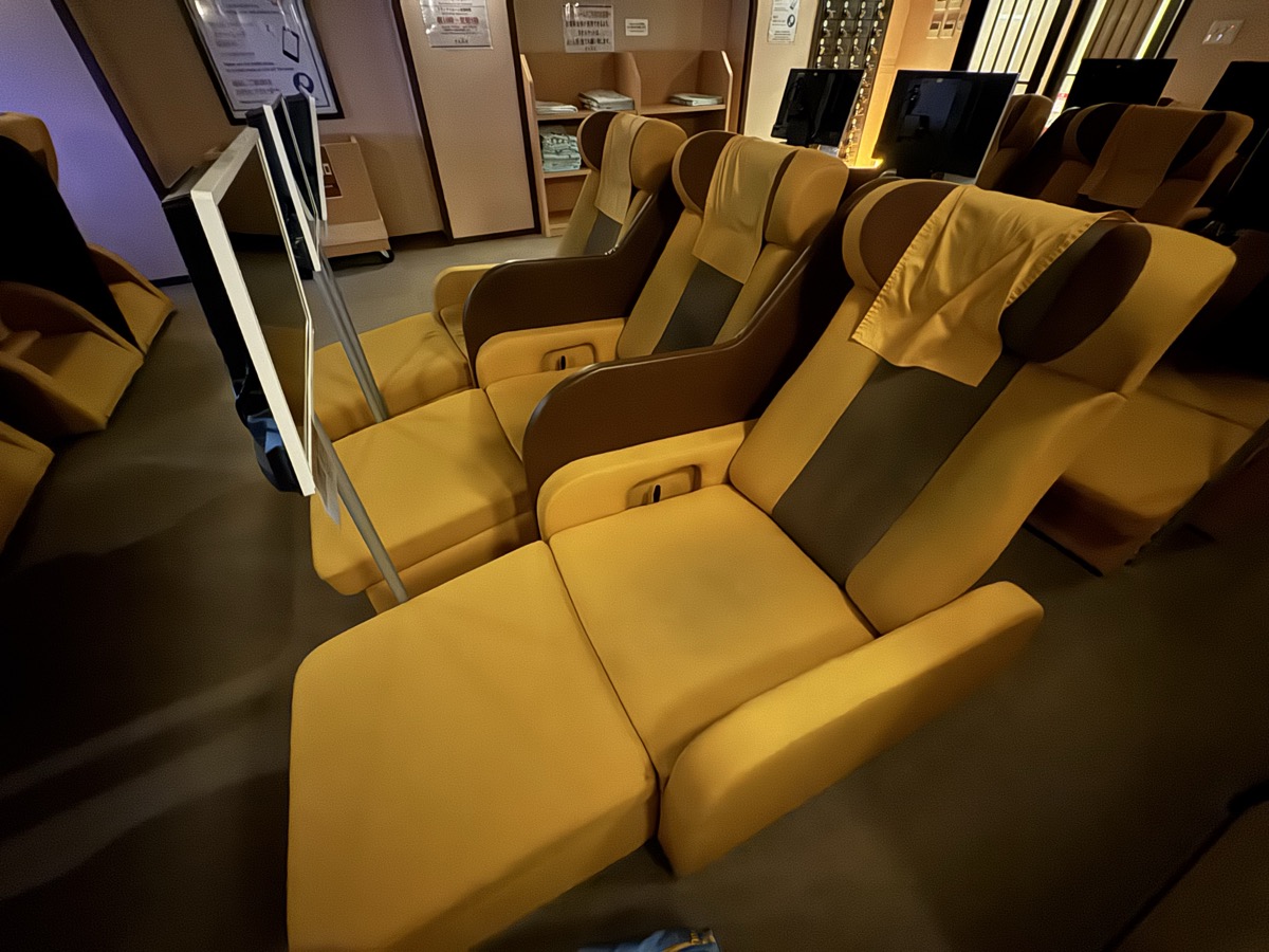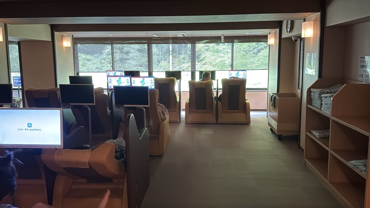 箱根湯本温泉天成園の「日帰り」用リラックスルームの、入口付近にしかないコンセント付きリクライニング席を確保