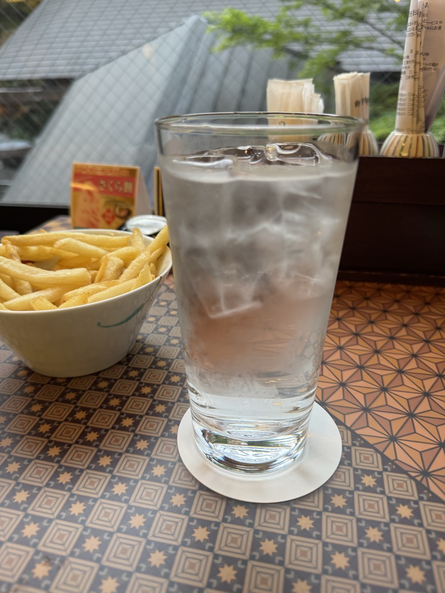 箱根湯本温泉天成園憩い処でオリジナル焼酎「玉簾の滝」芋の水割り580円( ^ ^ )/□