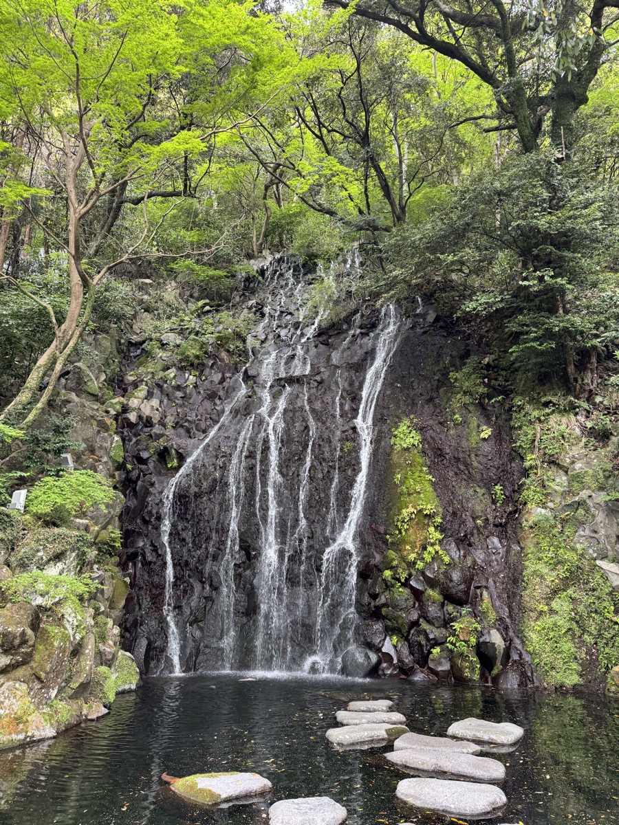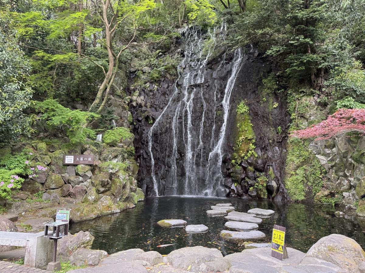 箱根湯本温泉天成園の裏の、昨夕の芋焼酎や今朝の豆腐の仕込み水、玉簾(たまだれ)の滝