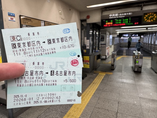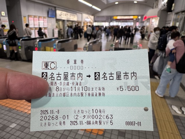 この乗車券は名古屋→名古屋のO型きっぷですが、201km越えるため特定都区市内制度適用となり、名古屋市内たるここ金山駅から乗れるわけです(^_?)?☆ なおえきねっとではO型きっぷは買えませんが、「八田→名古屋」で買えてます(^^)v