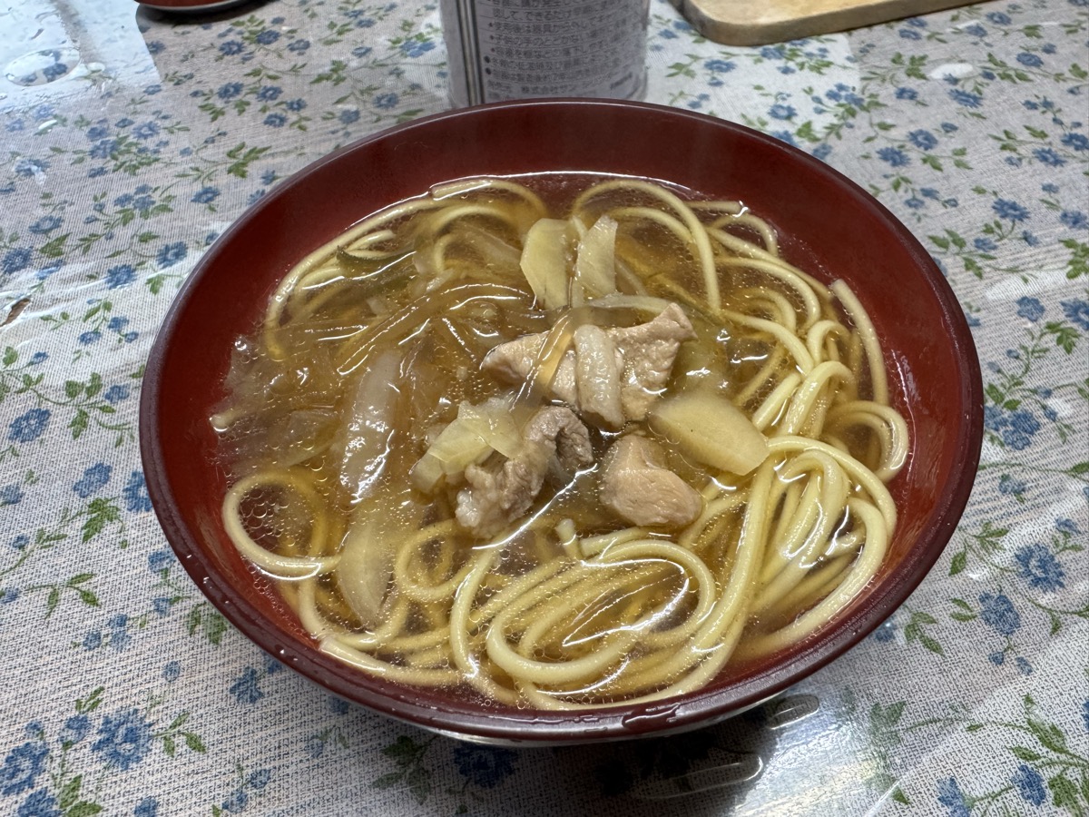 昨晩は3時前まで呑んでしまい(3人で黒霧島5合瓶1本以上呑んだ!)、10時前に起きての7時間睡眠。あさごはんは昨晩もちょこちょこ供されてたグルタミン酸大爆発の昆布パン、そしてピエンローの残りに生姜と棒麺ぶち込んだ和ラーメン。染みる!ヽ(´▽`)/