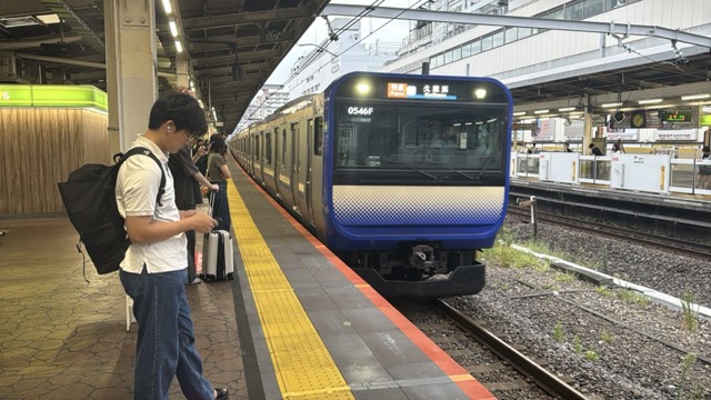 東北新幹線やまびこ218号は終点東京駅に余裕時分30秒早着、地下5階の総武地下ホームまでスムーズに下りられまして快速千葉行きに乗り継いで