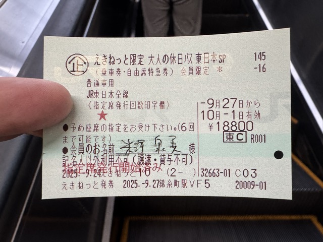 大人の休日倶楽部パスで入場した宇都宮駅から新幹線やまびこ218号東京行き自由席に乗車