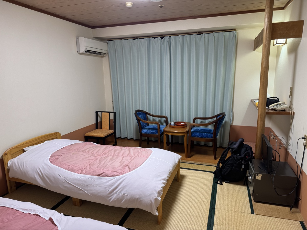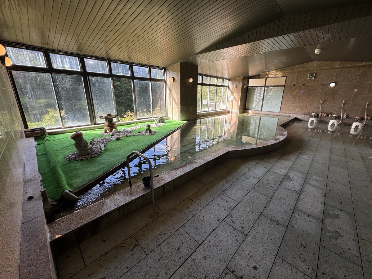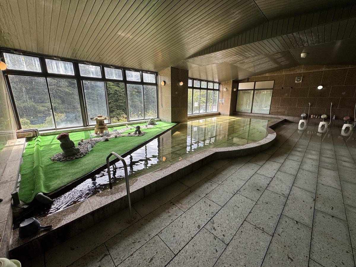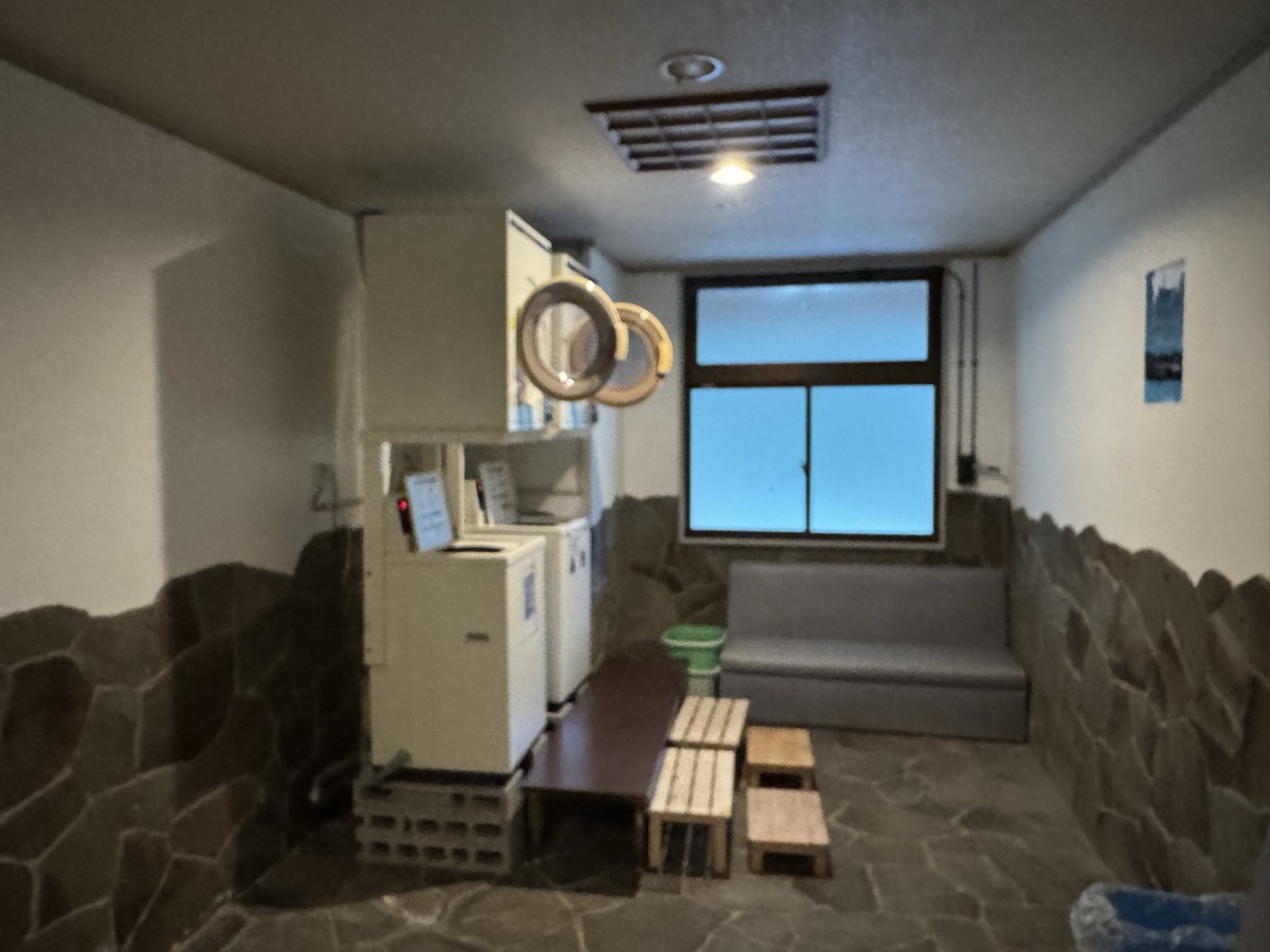 昨晩は22時半に就寝、6時に起きる7時間半睡眠で、まずは1階露天風呂わきにあるコインランドリーへ。4泊5日は洗濯挟めば3日ぶんの衣服で済むのでありがたや。4.5kg200円で洗剤別ですが常時携行してますので利用し、2階の内風呂に向かいました。