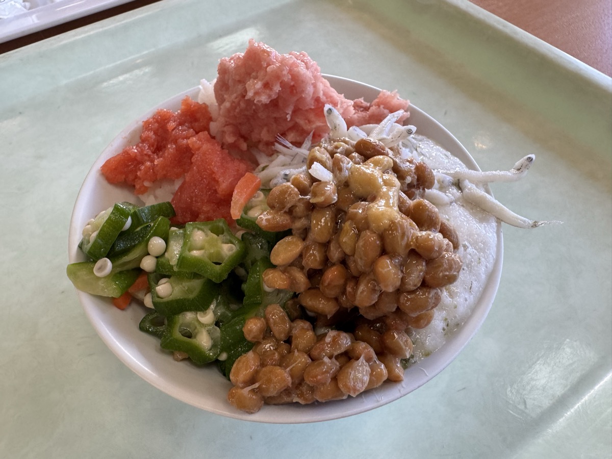 第2&3弾は のっけ丼、1杯めは とろろオクラ納豆しらす明太子ねぎとろ、2杯めは非動物で とろろオクラ焼きみそ青唐辛子 昆布佃煮 海苔佃煮。後者はどれも甘めなのが北関東か。