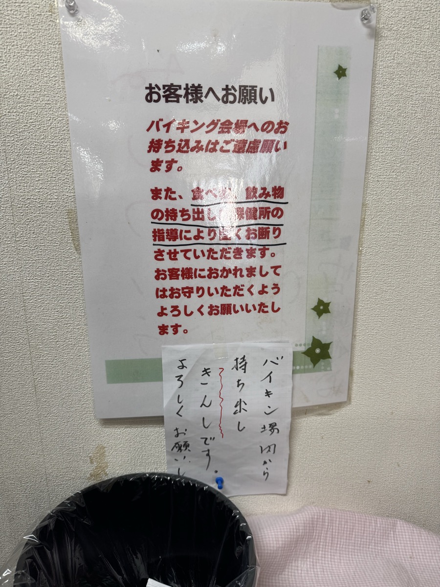 そしてラストは機械淹れコーヒーとともにブルーベリーヨーグルト&いちごヨーグルト(どちらも甘め)でまったり。ドリンクバーの場所に物騒な掲示を発見!(^◇^;) これで1100円? ならまぁまぁじゃないかしらヽ(´▽`)/