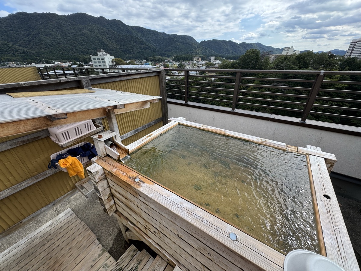 13時、延長90分昼休みの途中ですが、鬼怒川温泉ホテルニューおおるり11階屋上の露天風呂、蒼月の湯にくちあけ(・∀・)イン!!