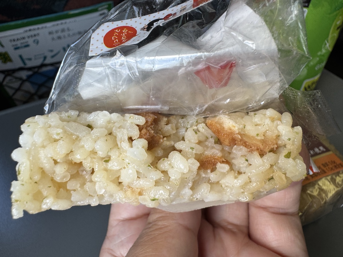 古川駅に戻り有人カウンター改札口から再入場、陸羽東線鳴子温泉行きに乗車して2人ボックス占有して、ファミマで追い買いした