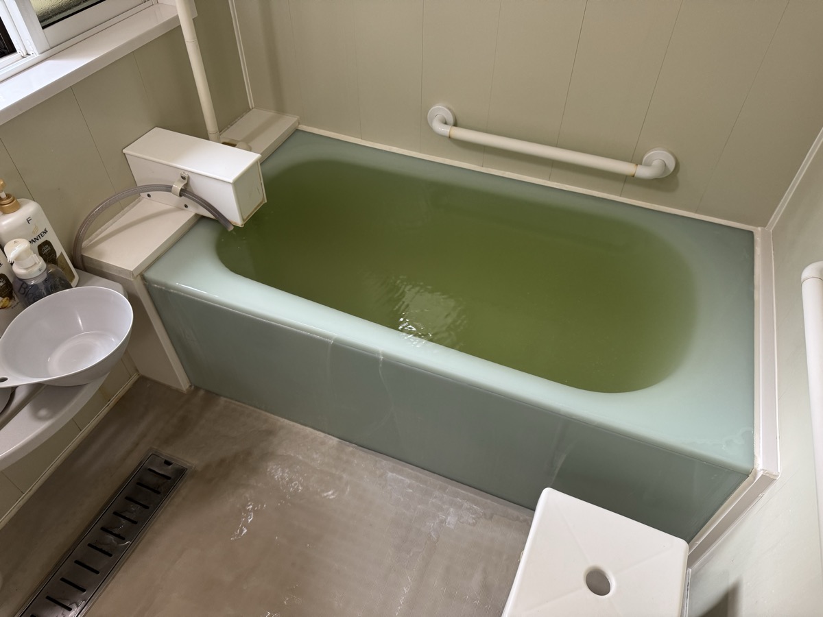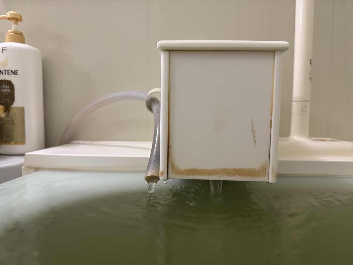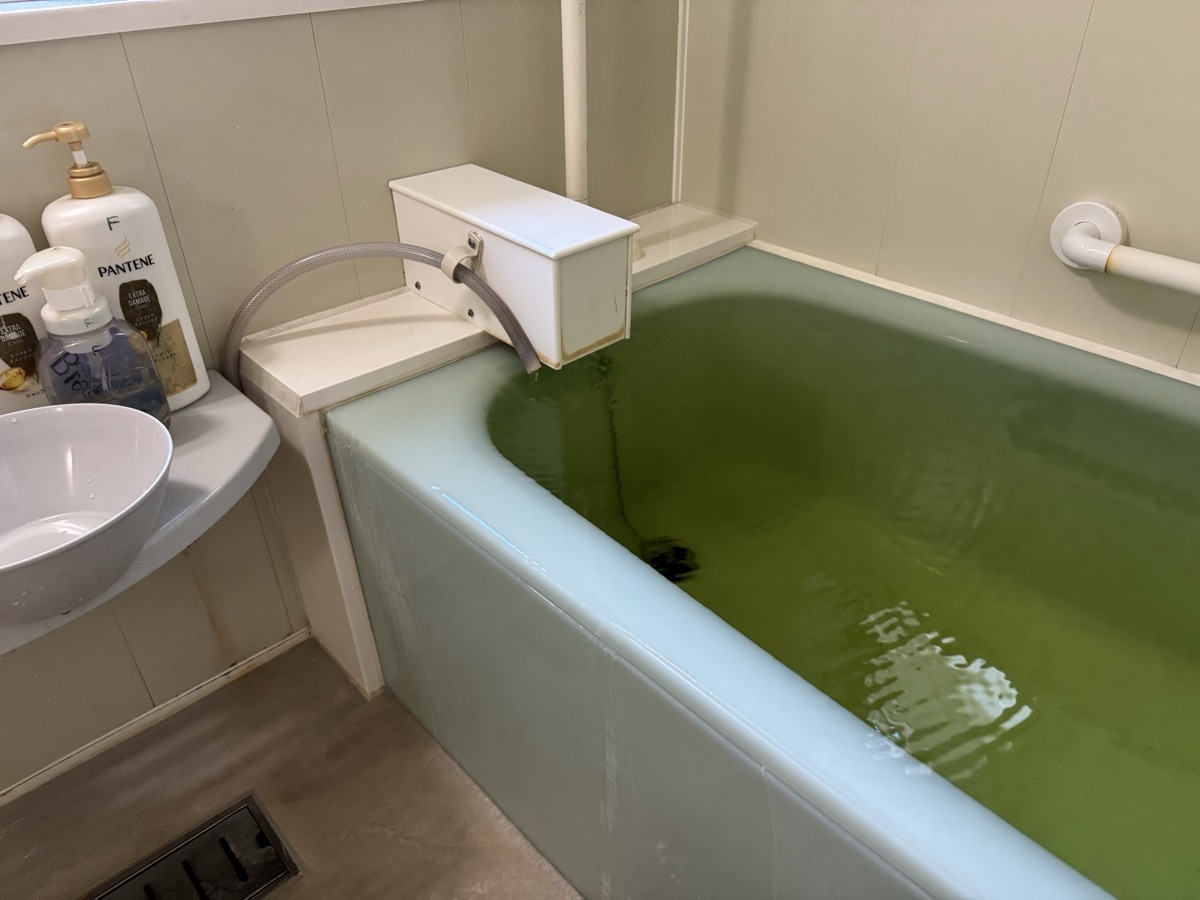 川渡温泉藤島旅館の部屋付き風呂に、いったん強烈に加水をした上で、源泉投入量の2/3くらいの加水量にしたところ、41℃弱の大適温化☆*:.。. o(≧▽≦)o .。.:*☆