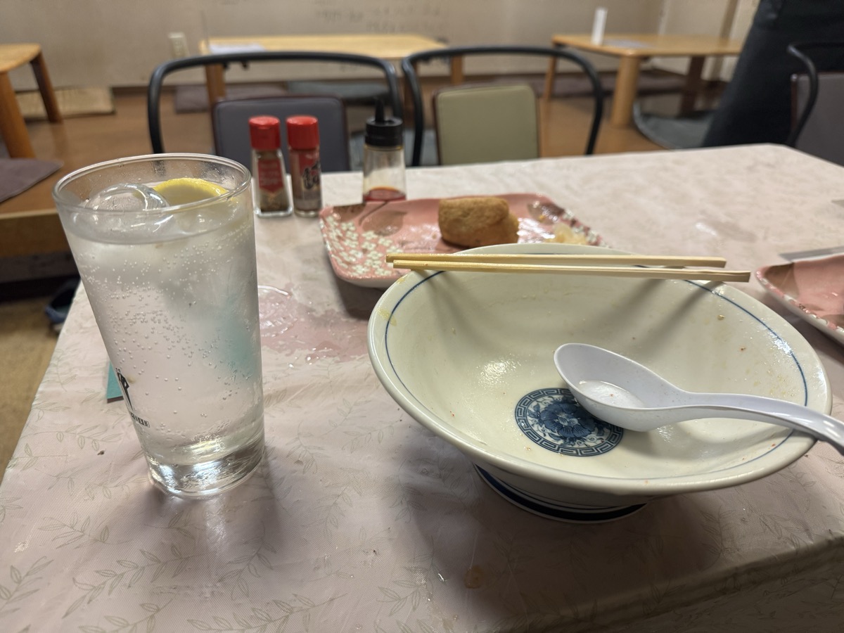 鳴子温泉菅原分店765から徒歩1.3km、東鳴子温泉食堂千両に(・∀・)イン!! とりまレモンサワー400円うぇーい( ^ ^ )/□ …も!