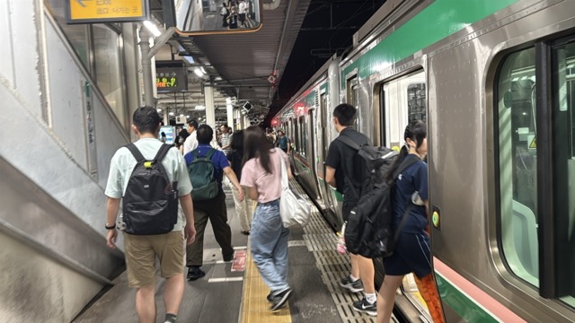 どうやら大宮駅で完全満席の理由は団体旅行の全国花火競技大会らしく、かつ仙台駅から貸切バスらしい