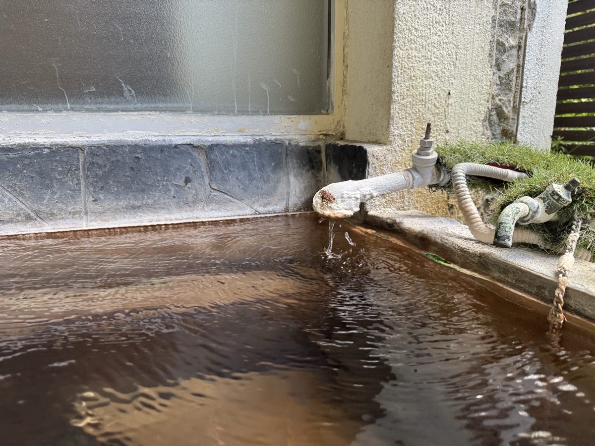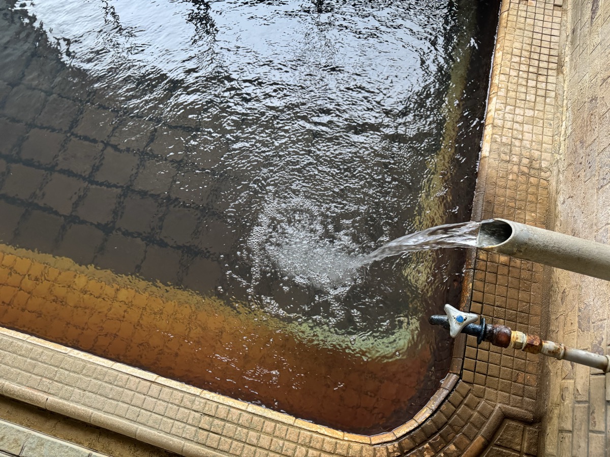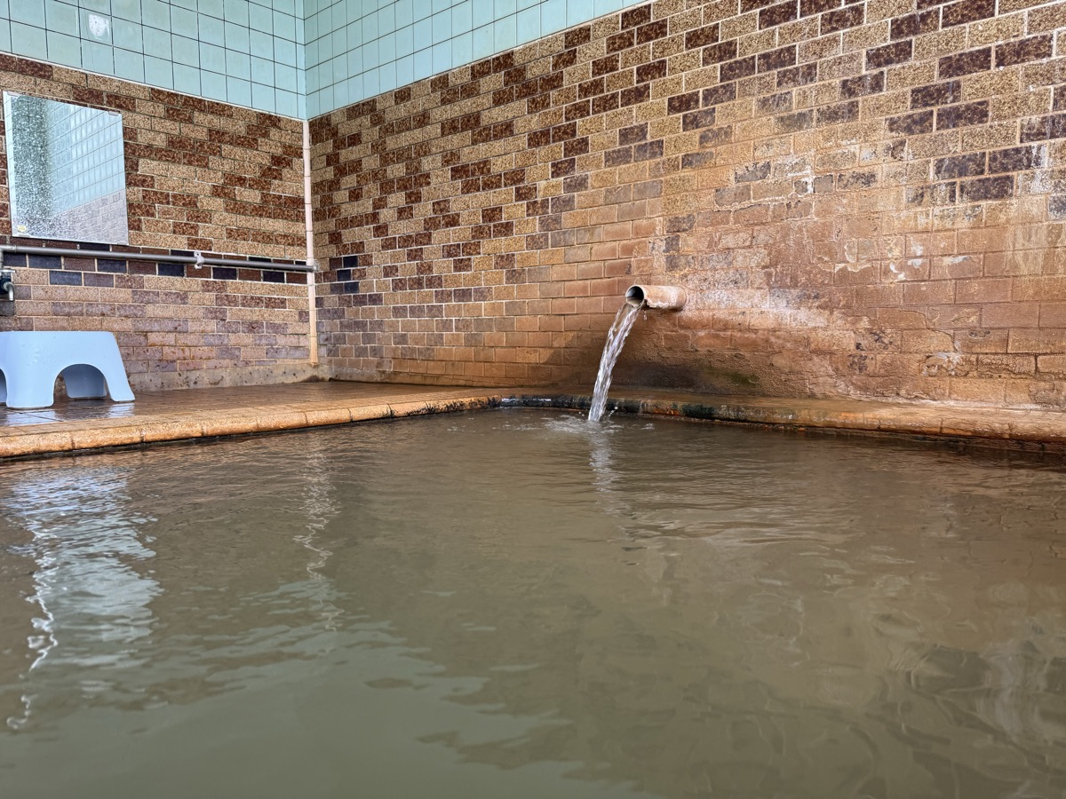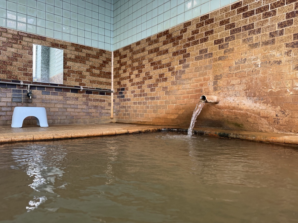 東鳴子赤這温泉阿部旅館でのワーケーション中断して1・3号泉。42℃とやや熱くなり、微細な粉状の褐色湯華みっちりです。なおランチの恐ろしい激辛カレーの影響ですが、ムコスタで腸痛は「違和感」くらいまでに収まってまして、もちろん前だけでなく後ろも辛く、もう少し辛抱です^^;