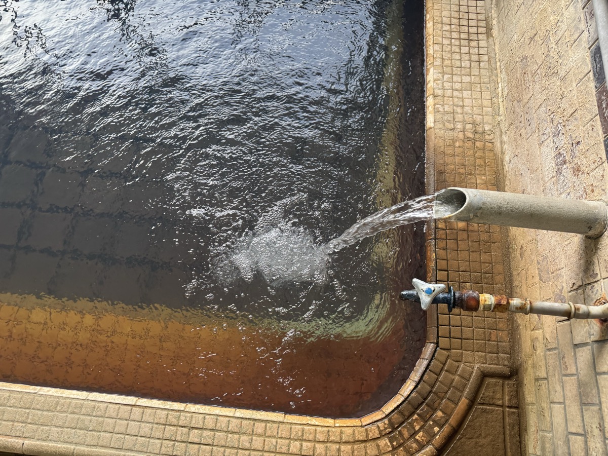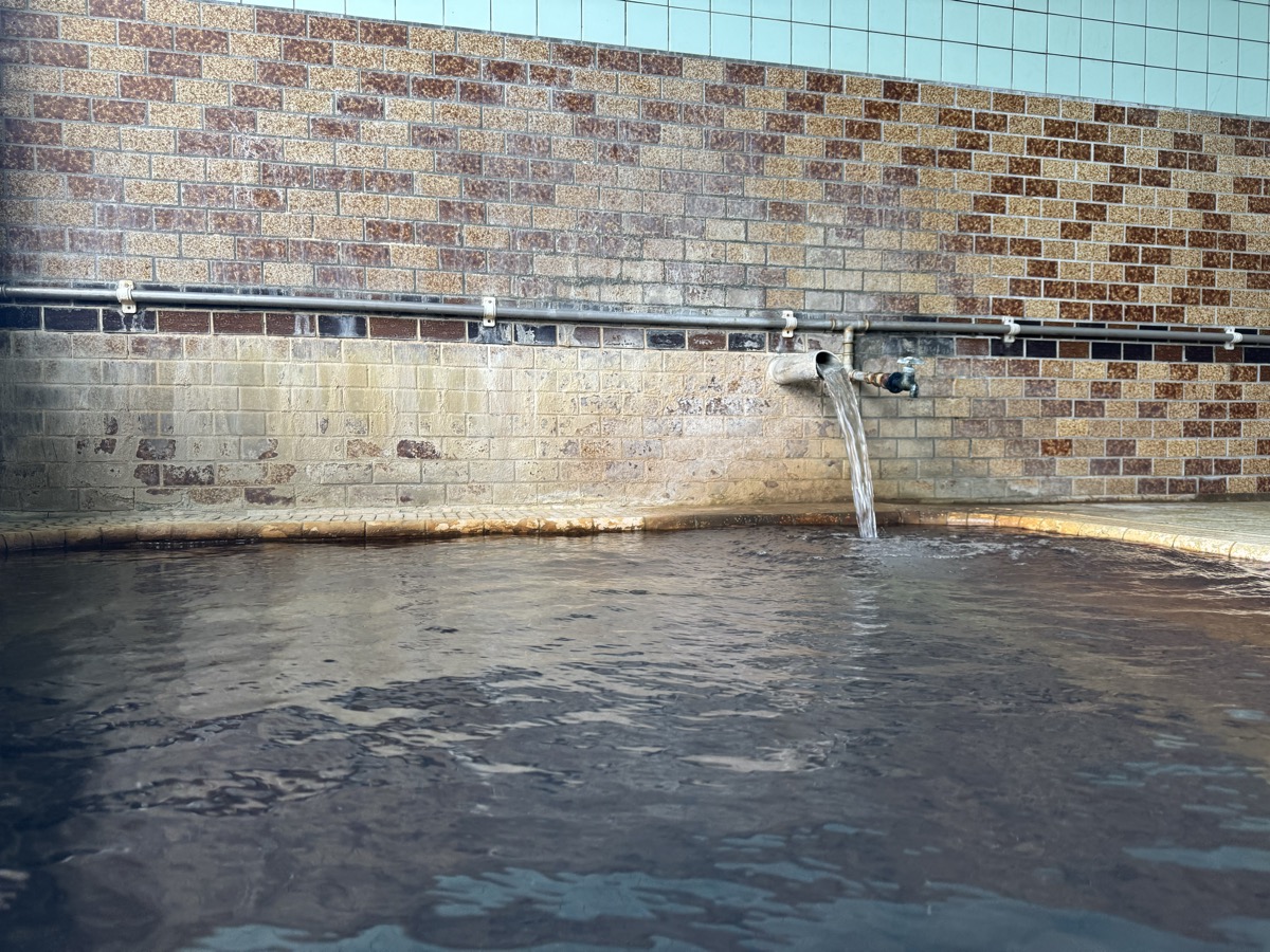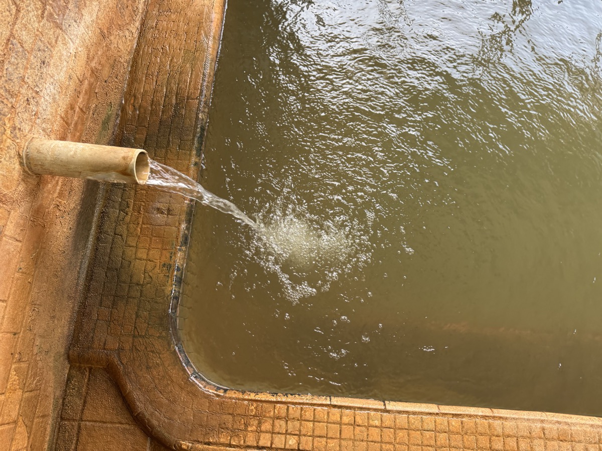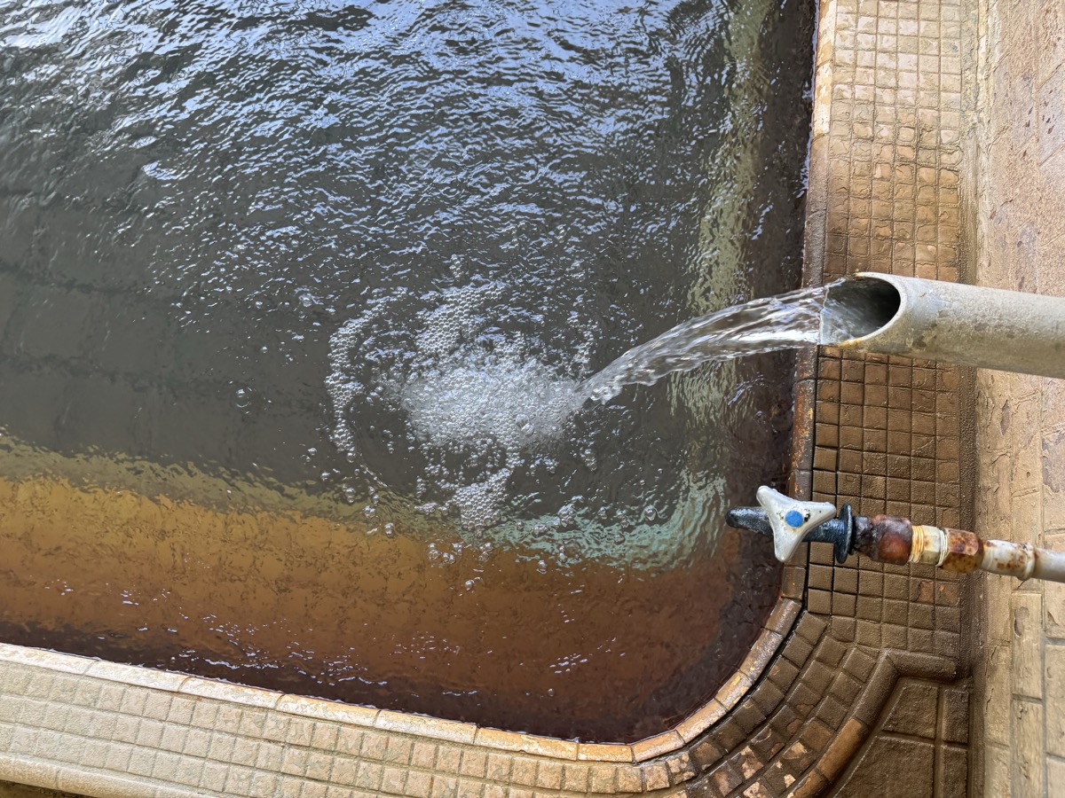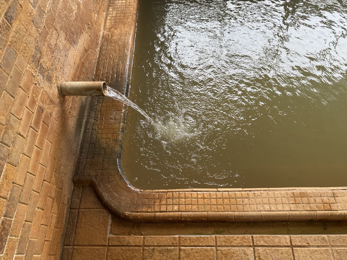 東鳴子赤這温泉阿部旅館でのワーケーション中断して1・3号泉。42℃とやや熱くなり、微細な粉状の褐色湯華みっちりです。なおランチの恐ろしい激辛カレーの影響ですが、ムコスタで腸痛は「違和感」くらいまでに収まってまして、もちろん前だけでなく後ろも辛く、もう少し辛抱です^^;