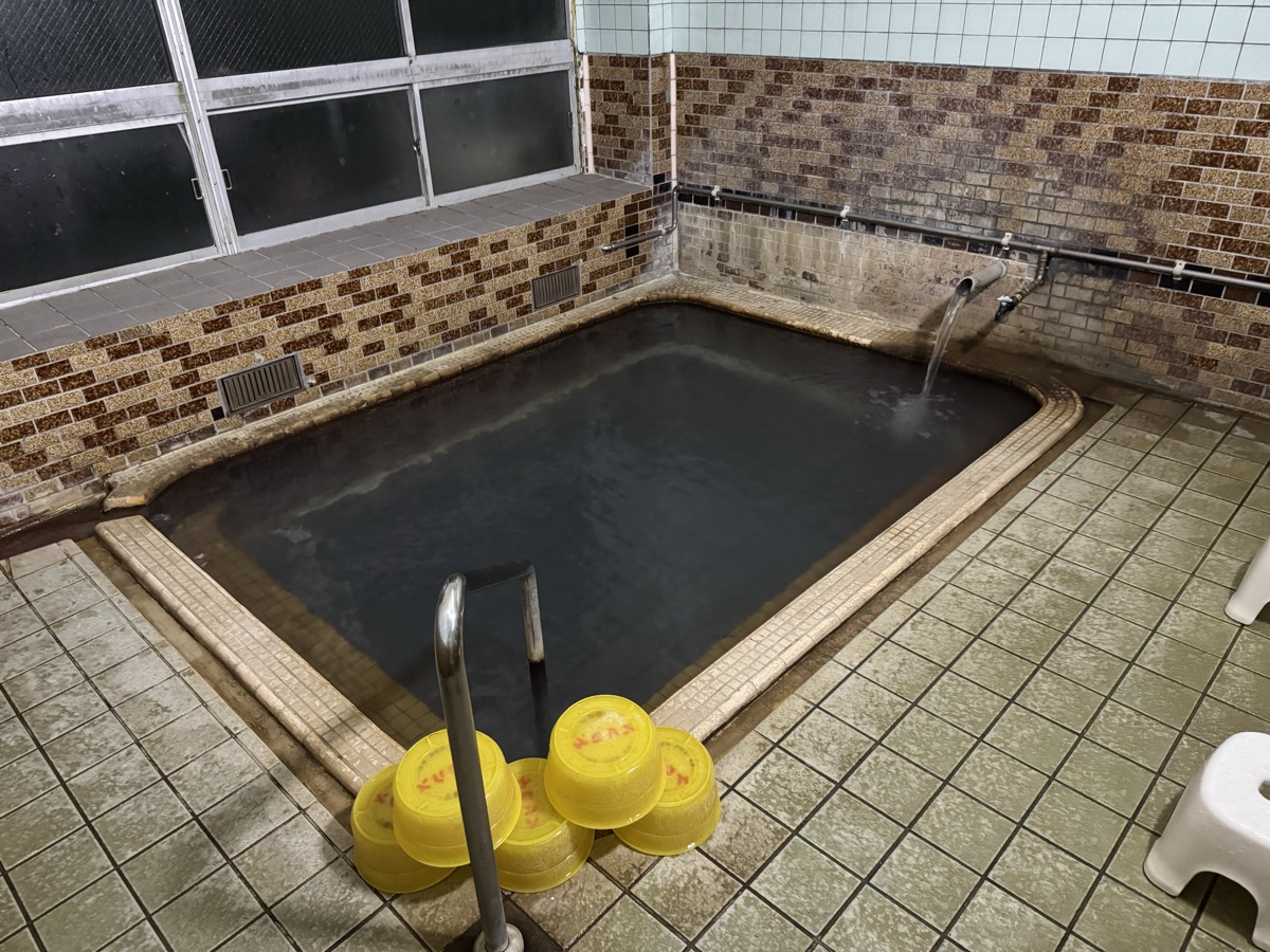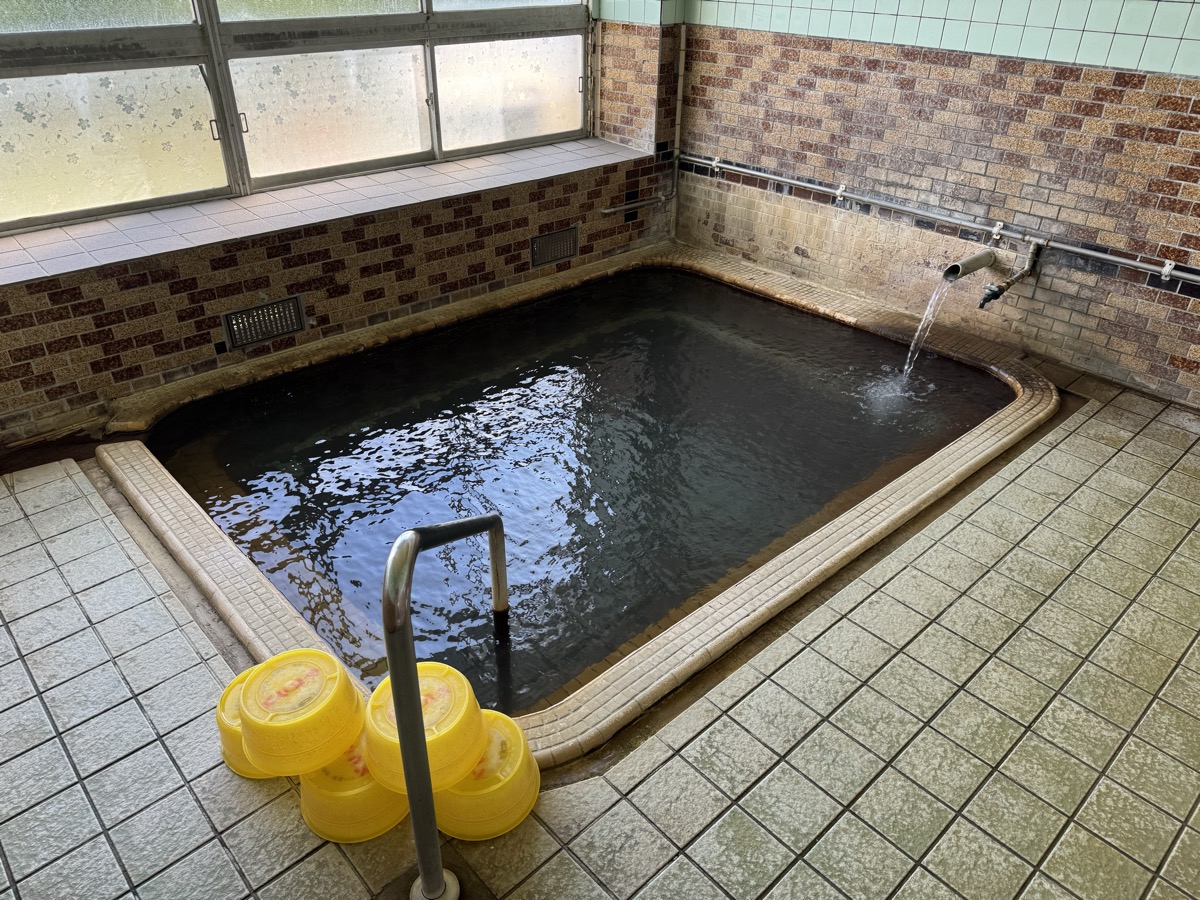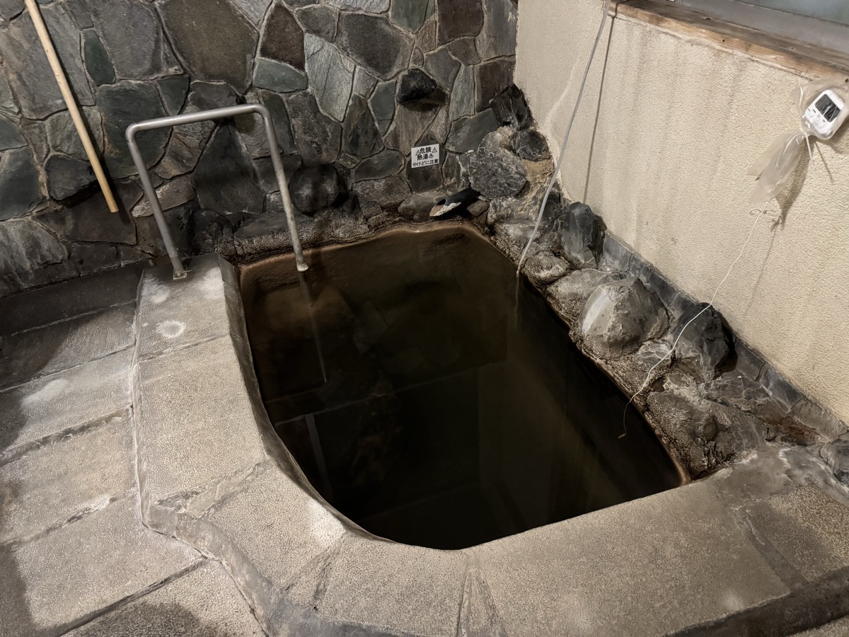 鳴子温泉旅館すがわらに戻り、戦時疎開のこどもたちを文字どおりの芋洗いするために造られた1階家族風呂、の右側小さい方に浸かりましょう