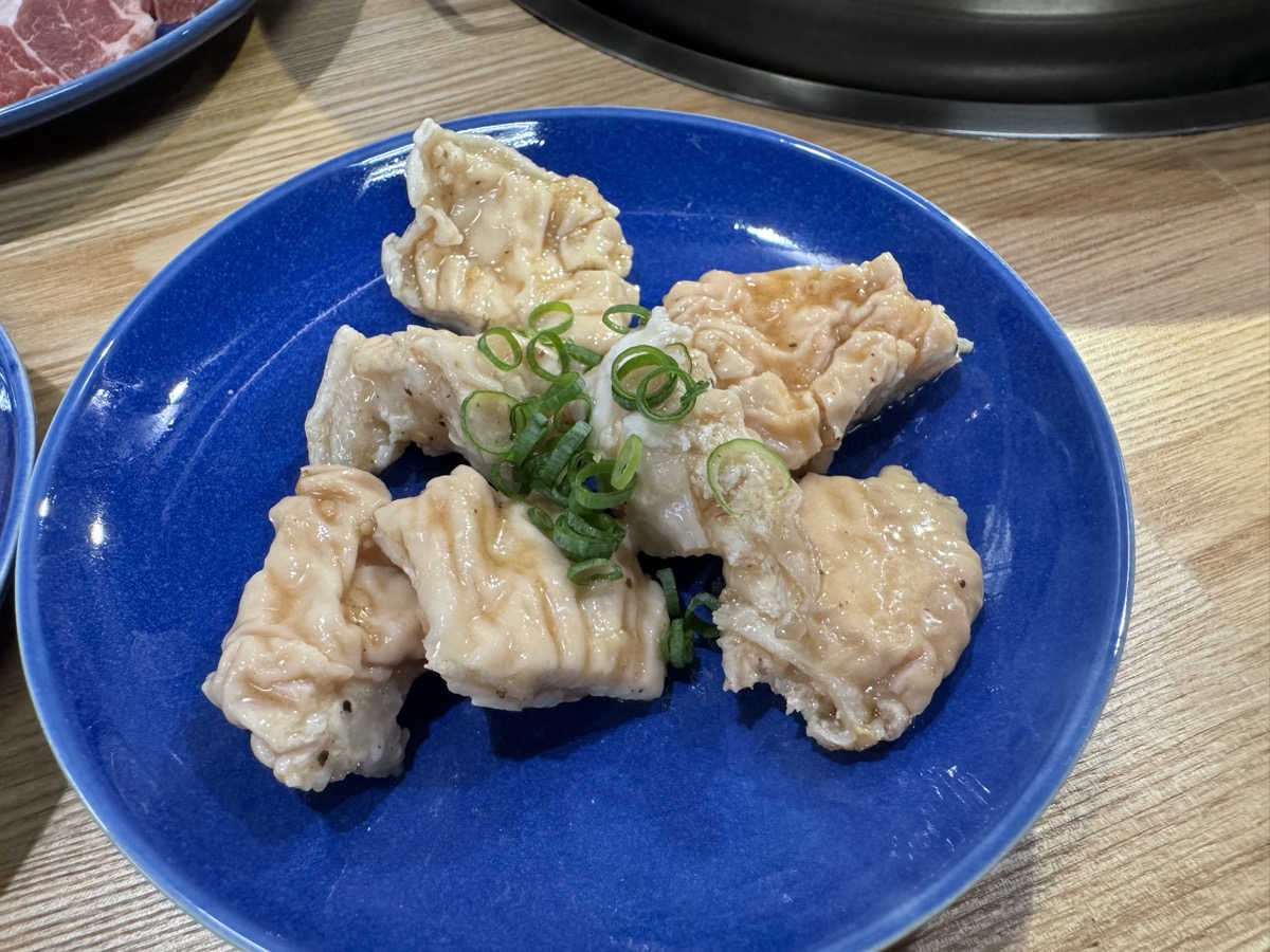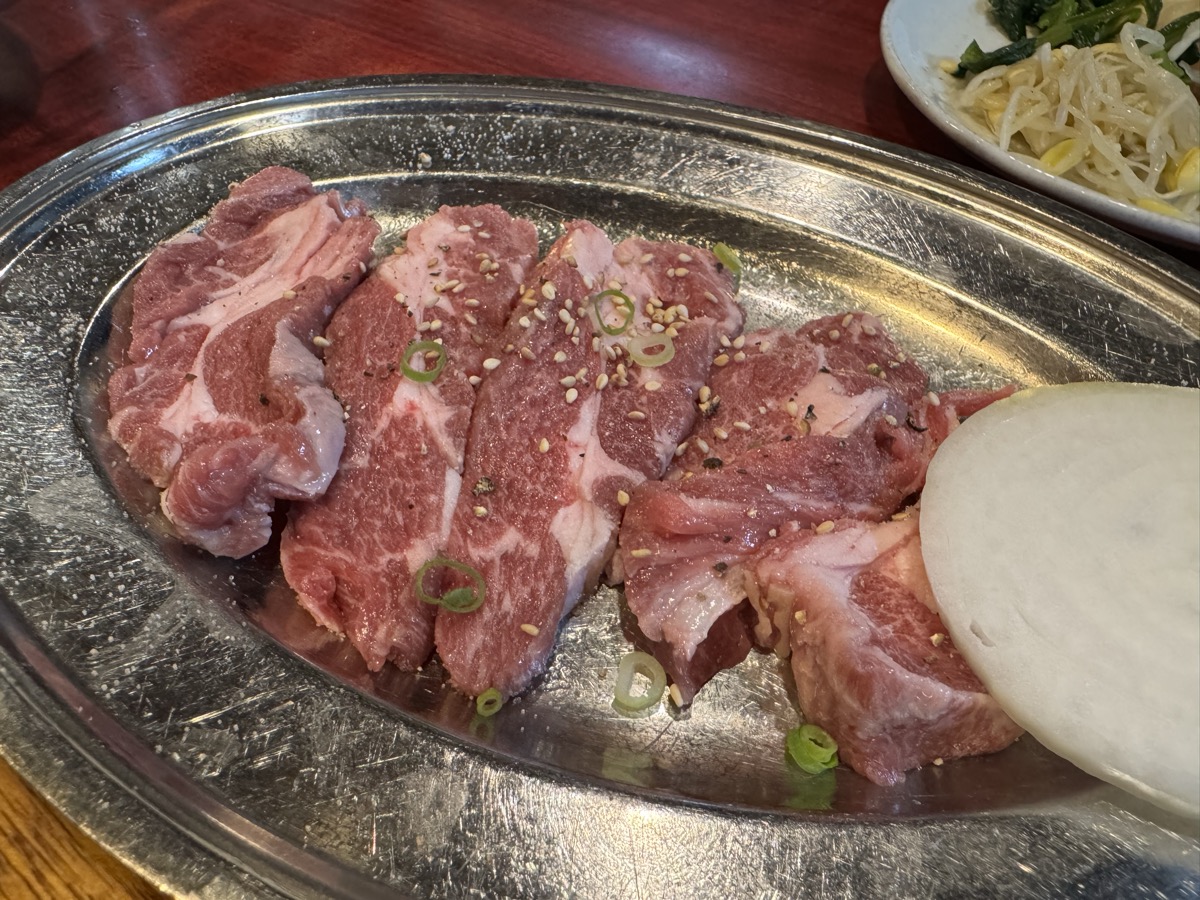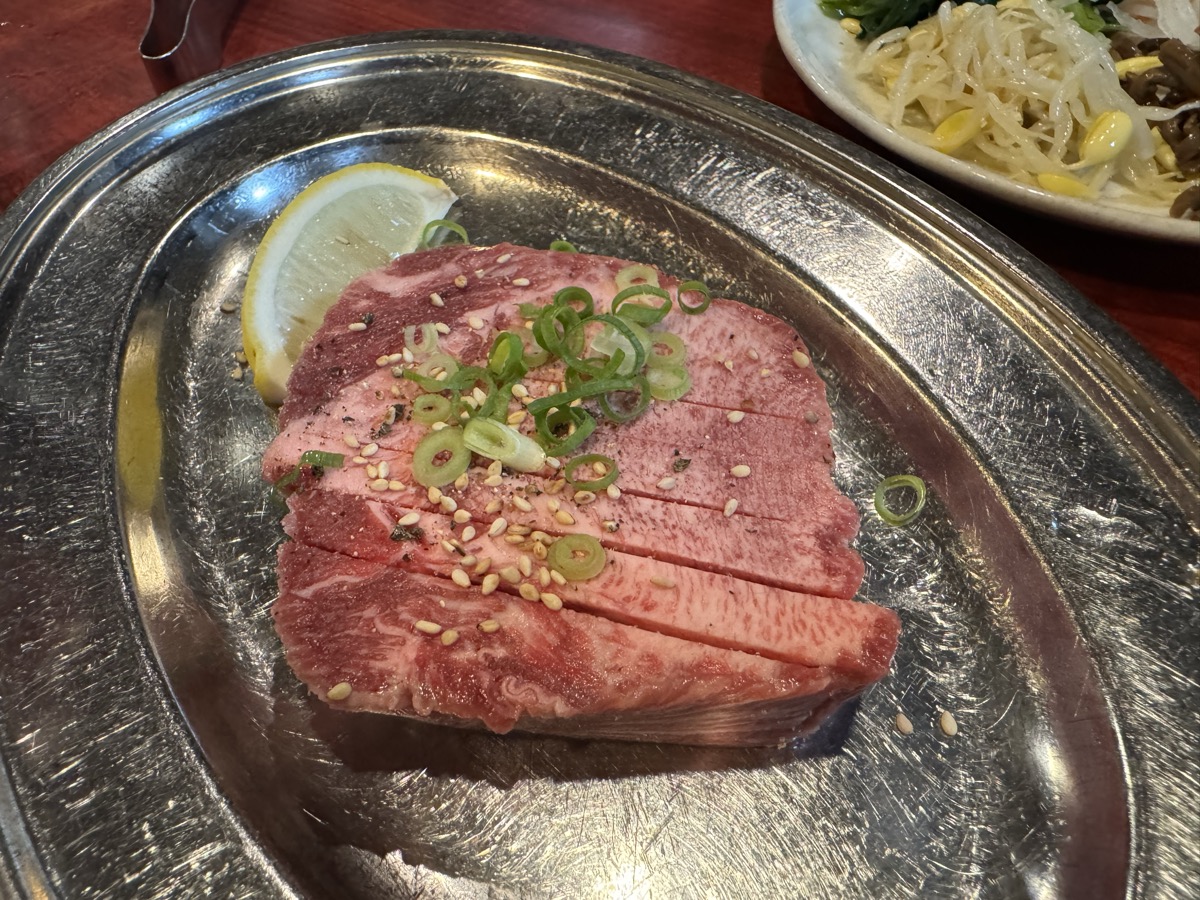 東鳴子温泉焼肉八兆の肉皿は厚切り牛タン、生ラム塩、タン先