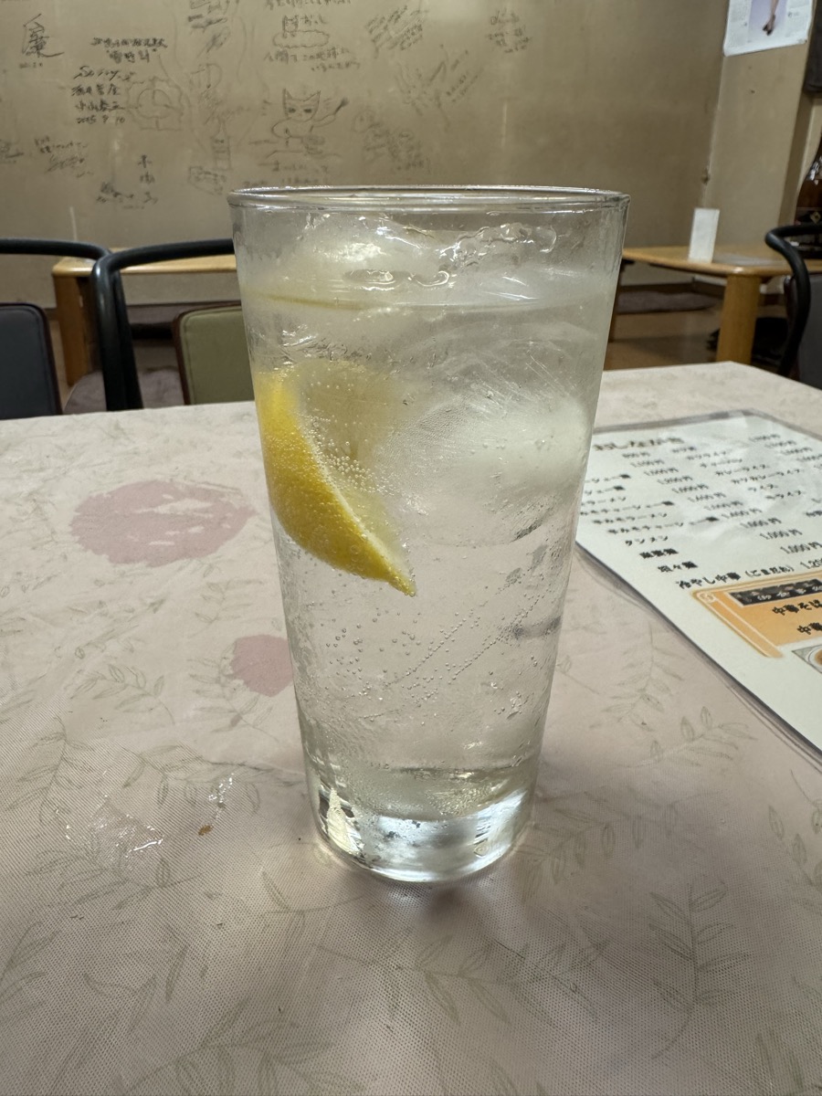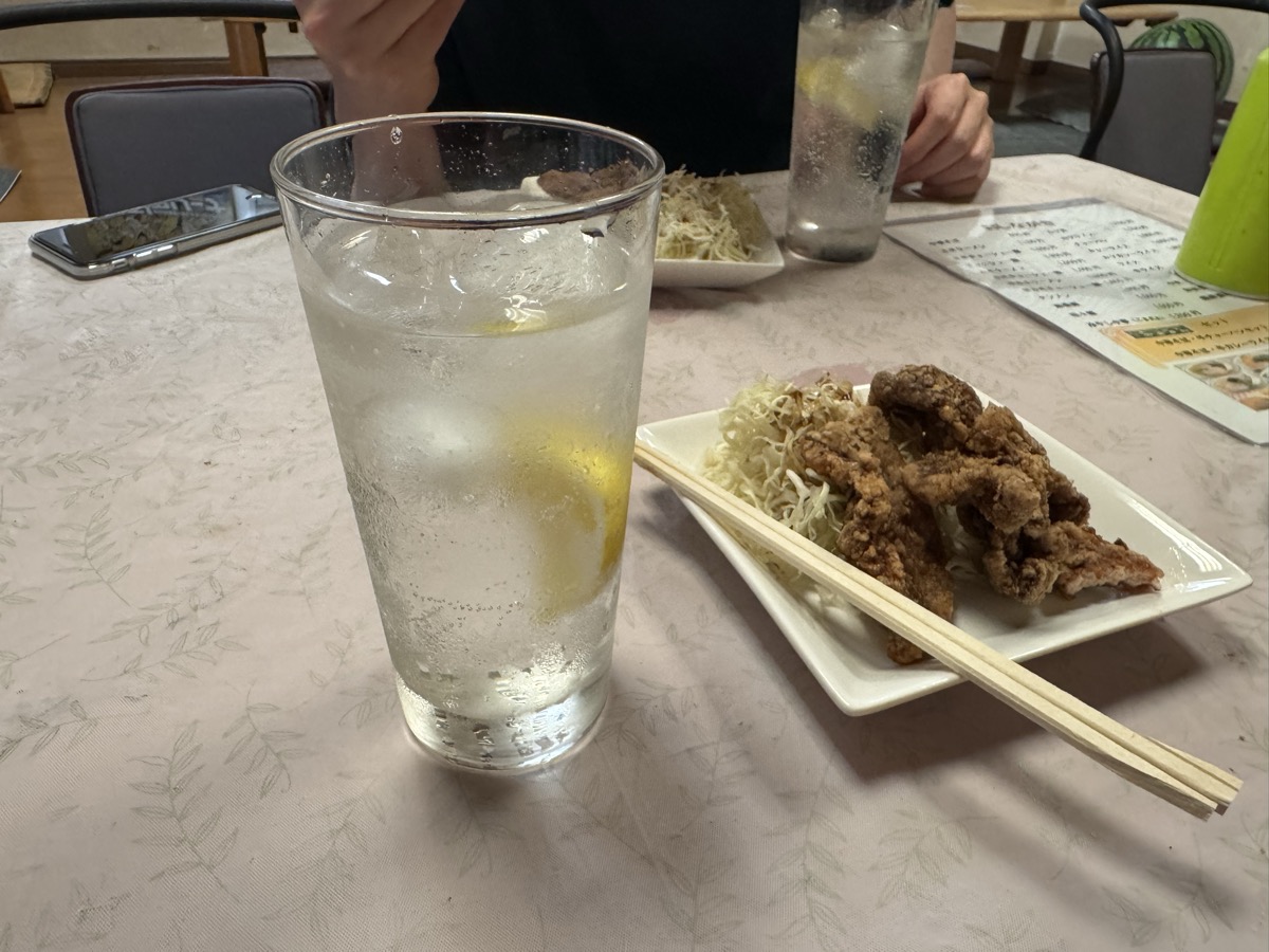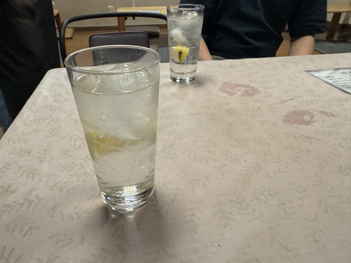 鳴子温泉旅館すがわらから徒歩1.3km、東鳴子温泉食堂千両、を開けていただきましてレモンサワー400円うぇーい( ^ ^ )/□