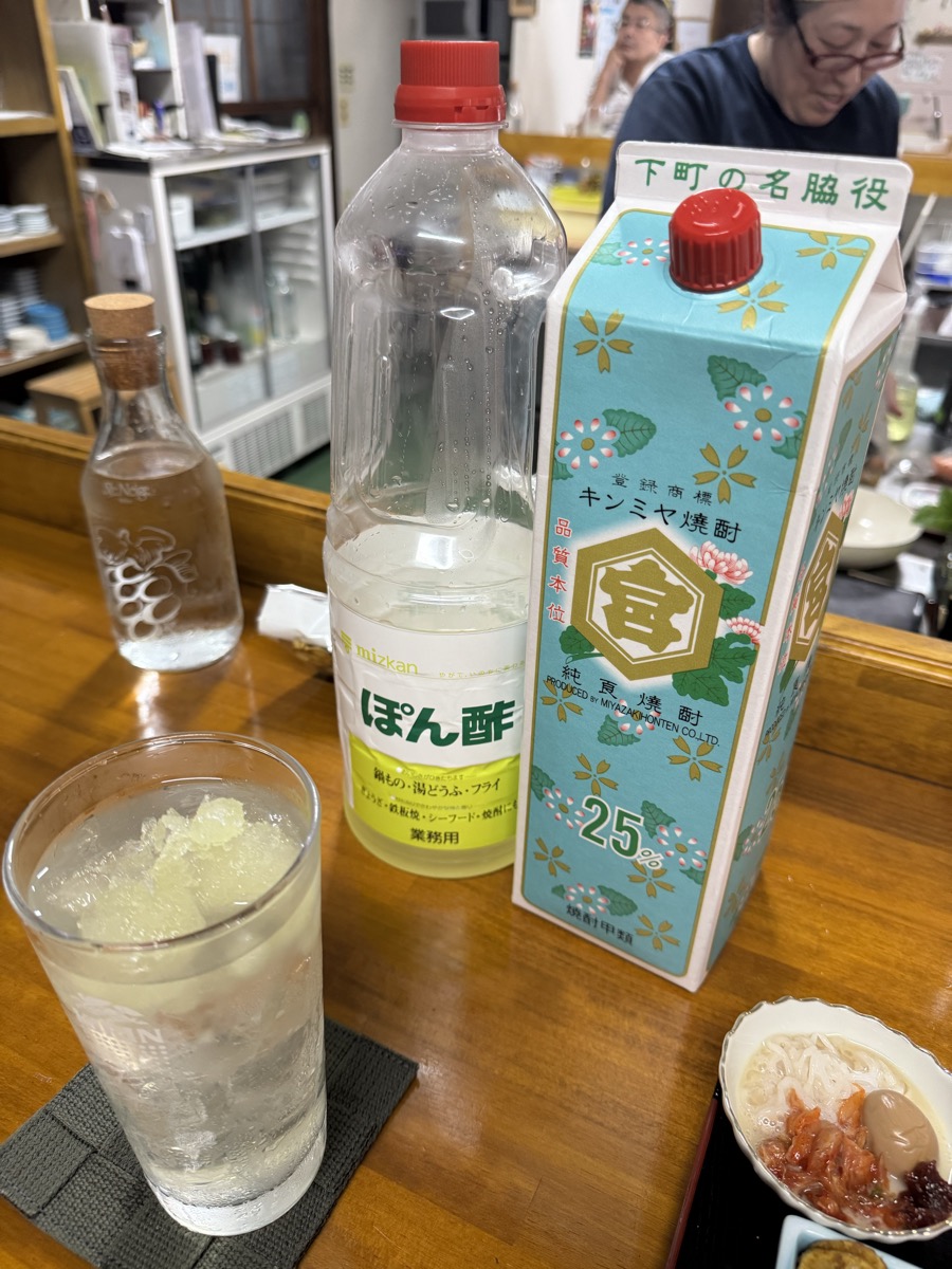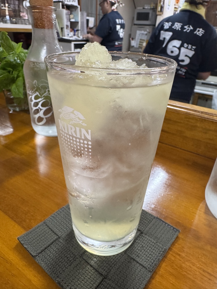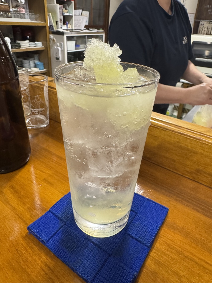 鳴子温泉旅館すがわらから徒歩1.3km、東鳴子温泉食堂千両、を開けていただきましてレモンサワー400円うぇーい( ^ ^ )/□