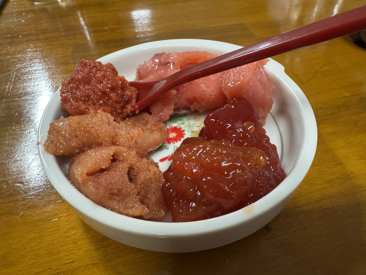 鳴子温泉菅原分店の今日も今日とて正義の魚卵セット、そして店内大混雑のため後出しのちょい食べセット