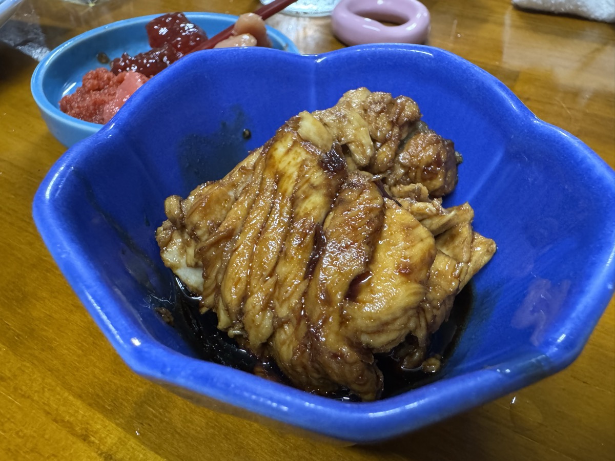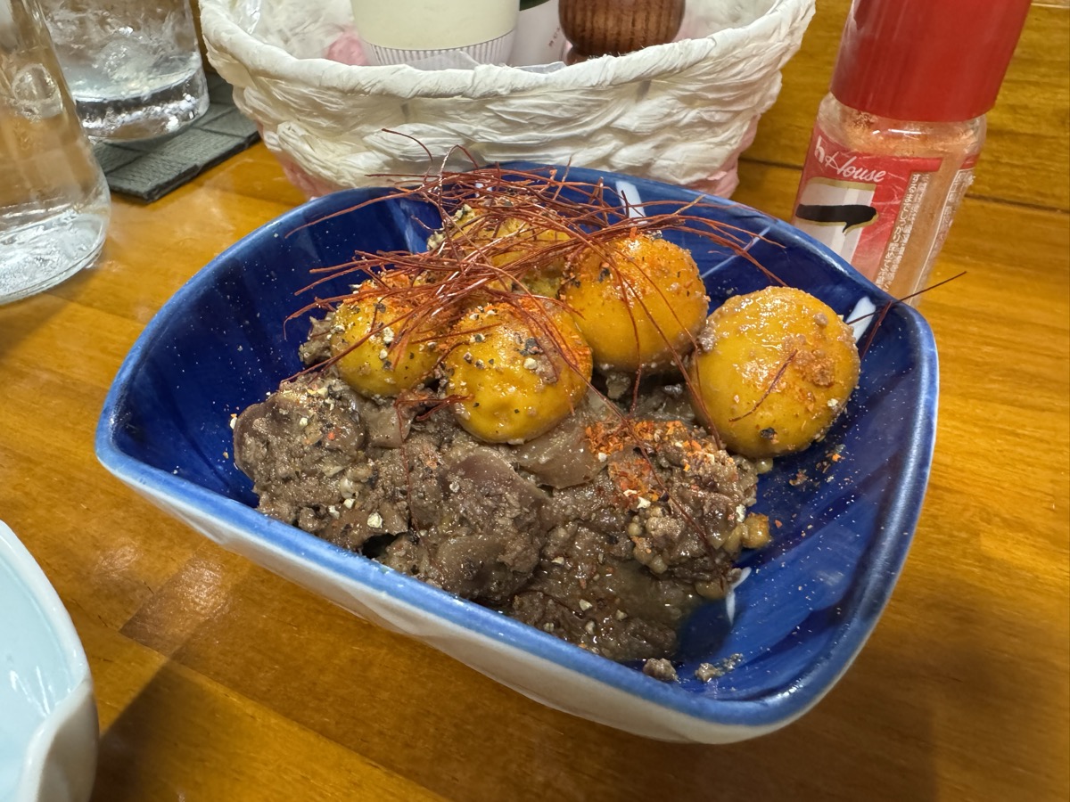 鳴子温泉菅原分店で仕入れ先変わった鶏もつ煮、ド定番の魚卵セットの無料オプション激辛明太子つき