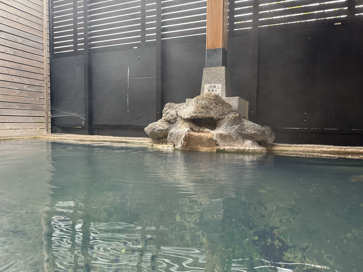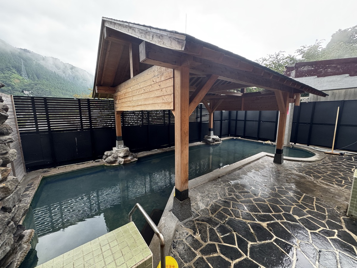今回の鳴子温泉郷プチ湯治の〆湯はこちら、貸切半露天からのラダーでの鳴子温泉旅館すがわら露天大浴場