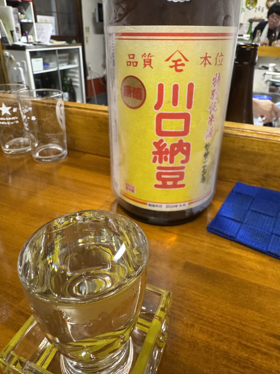 鳴子温泉菅原分店での王冠セット1周めは、いつもの川口納豆ササニシキ特別純米ひやおろし、信州亀齢、そして夏綿
