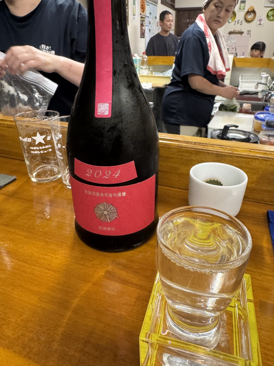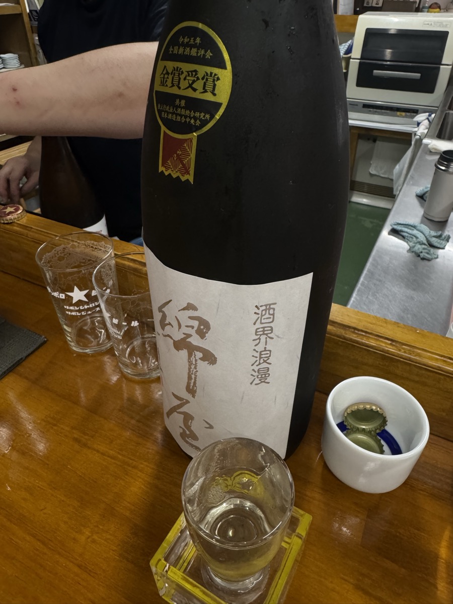 鳴子温泉菅原分店の王冠セット2周めは新政コスモス生酛純米、そして王冠2枚使いの綿屋 酒界浪漫 純米大吟醸