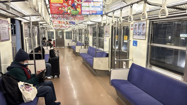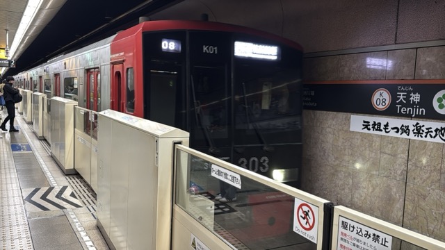 博多駅地下深くまで潜り、有人改札口で旅名人の九州満喫きっぷ見せて入場、トイレ寄ってから福岡市営地下鉄七隈線始発橋本行きに乗車